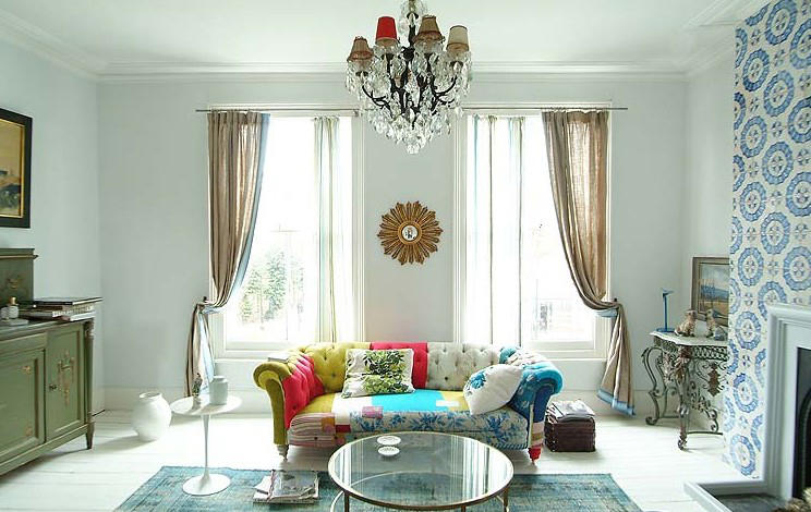 يُنصح المصممين باختيار ستائر غرفة المعيشة التي تحتوي على نافذتين ، نظرًا لطراز تصميمها ومزيج الألوان والمساحة