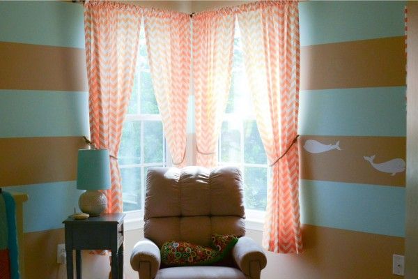 ستائر للنوافذ في غرفة الزاوية ، خيارات التصميم ، أمثلة