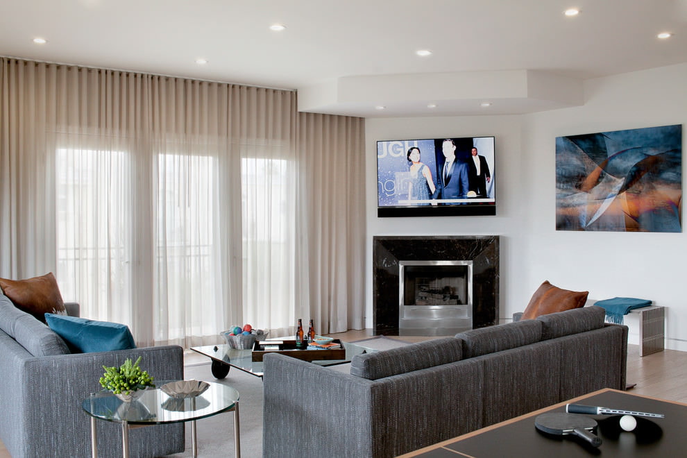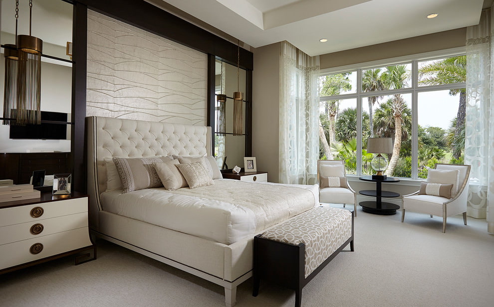 ستكون خطوة التصميم الممتازة بمثابة حجاب التول المعلقة من الداخل فوق ستارة سميكة. يمنح هذا الخيار راحة إضافية ويجعل الستائر في الخارج أسهل.