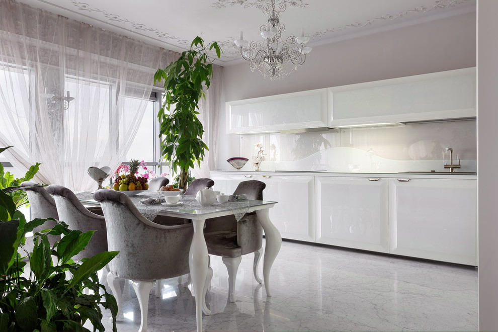 ستارة voilevaya البيضاء كلاسيكية في تصميم النافذة.