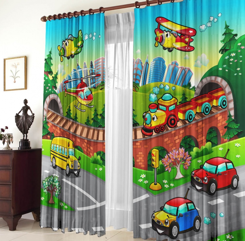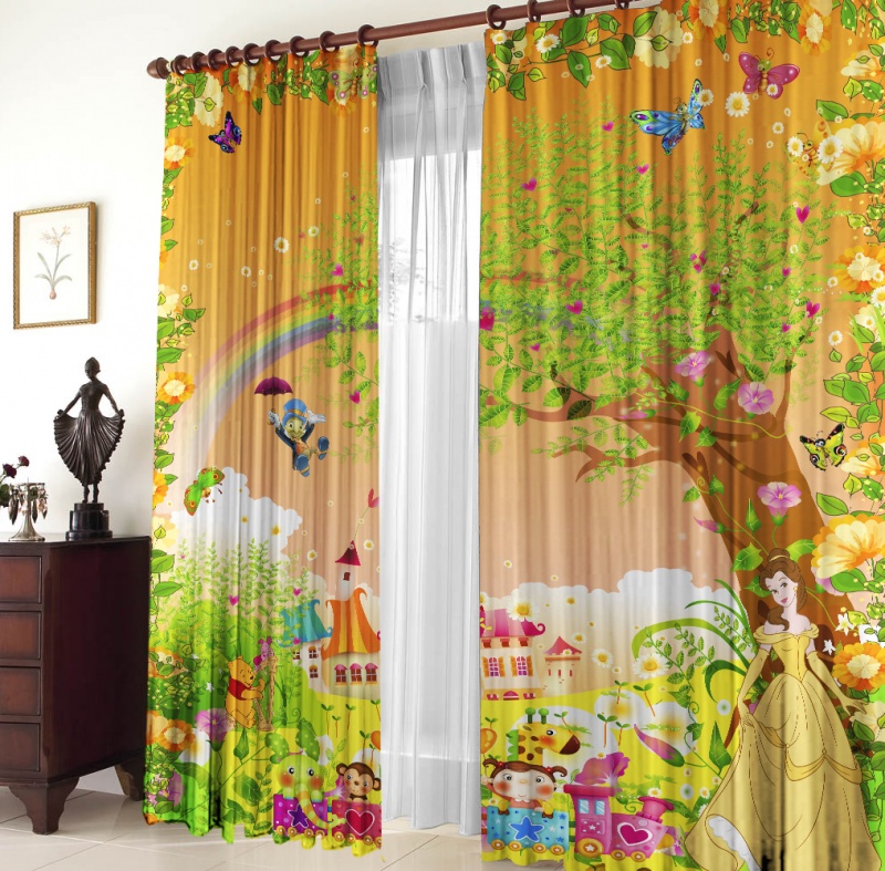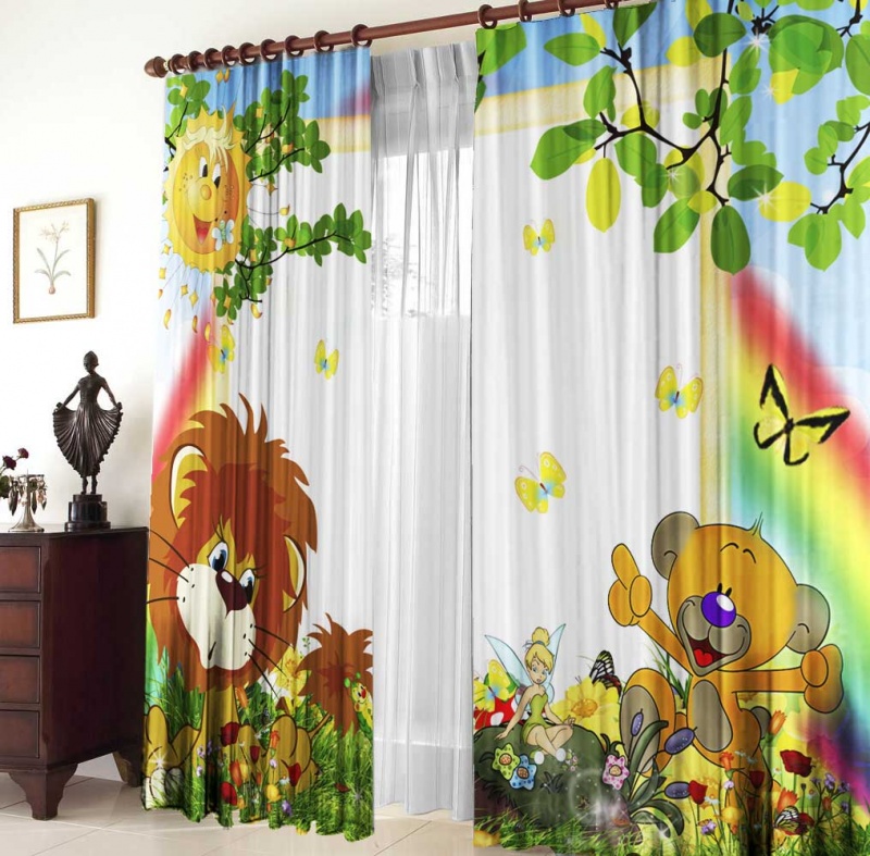 ستارة متعددة الألوان على نافذة غرفة الأطفال