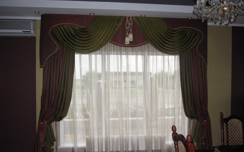 الانحناء تزيين الصنابير المعدنية أو البلاستيكية للستائر. خاصة في الأسلوب الكلاسيكي ، فإن أقواس الساتان تكمل بتناسق شديد تركيبة الستار. إنها مصنوعة من قماش متناقض ومطابقة للقماش الرئيسي. يمكن بالفعل تزيين الملحقات المُنتهية بالفعل ، إذا رغبت في ذلك ، بالخرز وأشرطة إضافية وجديل. يتم تحديد حجم القوس على أساس التفضيل الشخصي. لذلك ، إذا كنت تريد فقط إخفاء الحامل المعدني ، فاستخدم القوس الصغير.