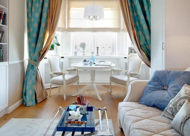 - الخطافات الموجودة في منتصف الستائر ستجعل نافذة فتح أكثر انسجاما.مثل هذا الاستقبال سيجعل الغرفة مريحة.