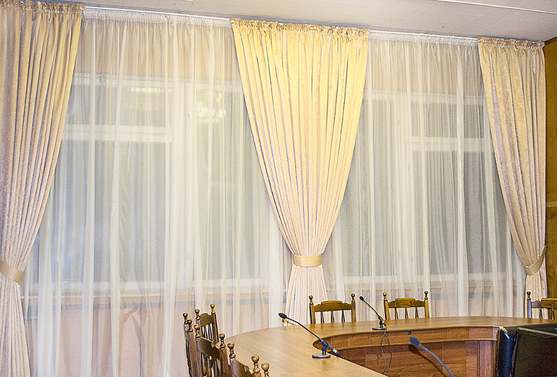 الستائر المستقيمة والممتدة تجعل الوضع صارمًا ورسمية.