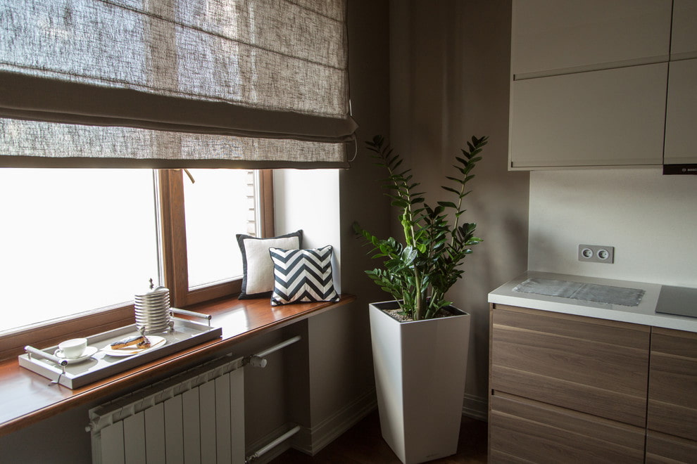 عند تثبيت الستائر الرومانية على نافذة النافذة ، تظل عتبة النافذة مجانية ، حتى عند إنزال القماش بالكامل.