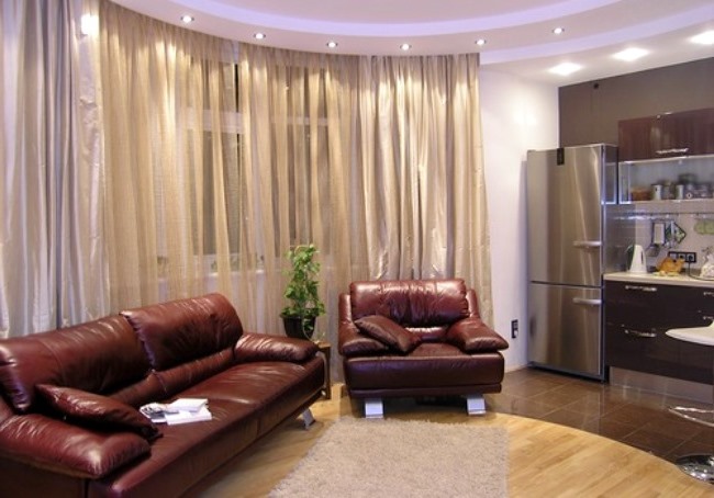 - التفضيلات الداخلية. لقد فقدت قضبان الستائر القياسية شعبيتها لفترة طويلة. من الصعب أن تنسجم مع الأساليب الداخلية الحديثة. من المألوف اليوم تزيين النوافذ بستائر هوائية تتدفق من السقف. تقنية التصميم المذهلة هذه مناسبة بشكل خاص لأنماط التباين والحديثة والطابق العلوي.