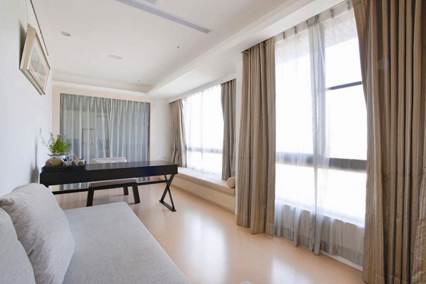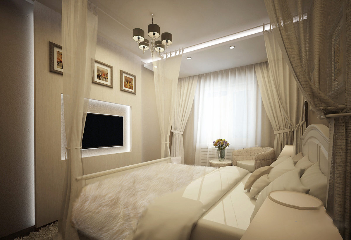 عندما تكون الكورنيش غير مرئية ، يتم توجيه الانتباه إلى جمال الستائر.
