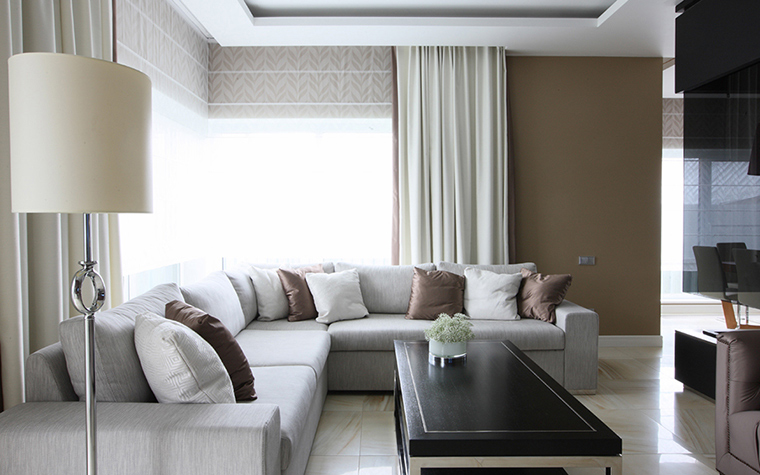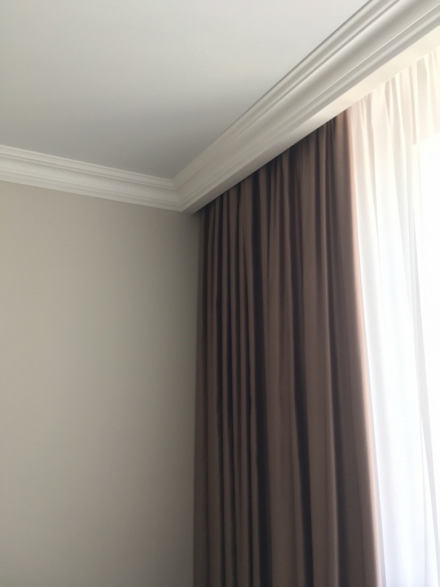يجب أن يخفي التصميم تمامًا عناصر تثبيت الستائر