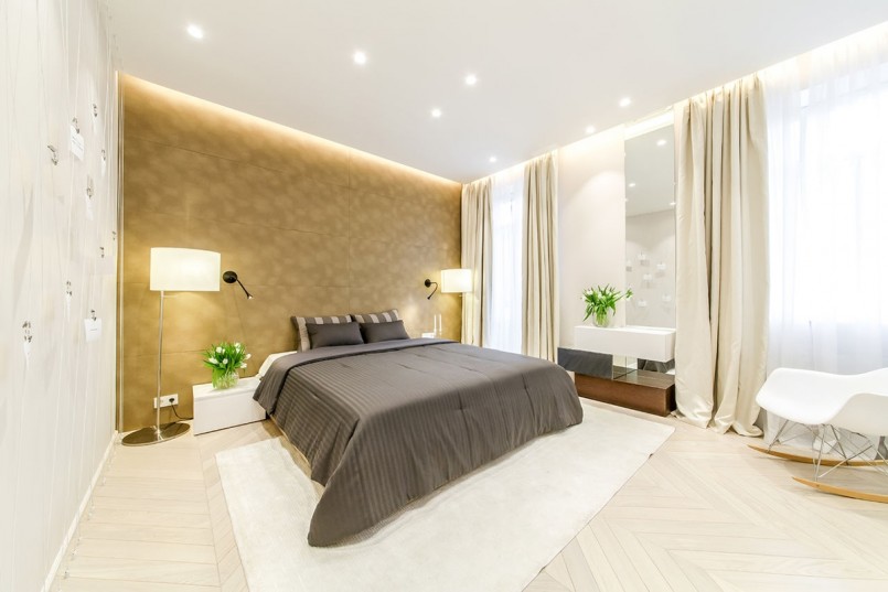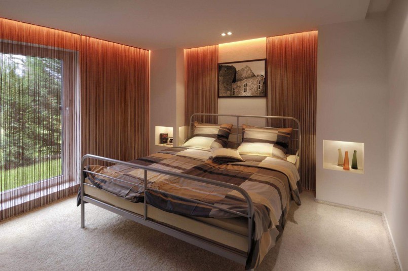 مع الإضاءة الخلفية ، يمكنك بسهولة خلق جو فريد من نوعه في غرفة النوم