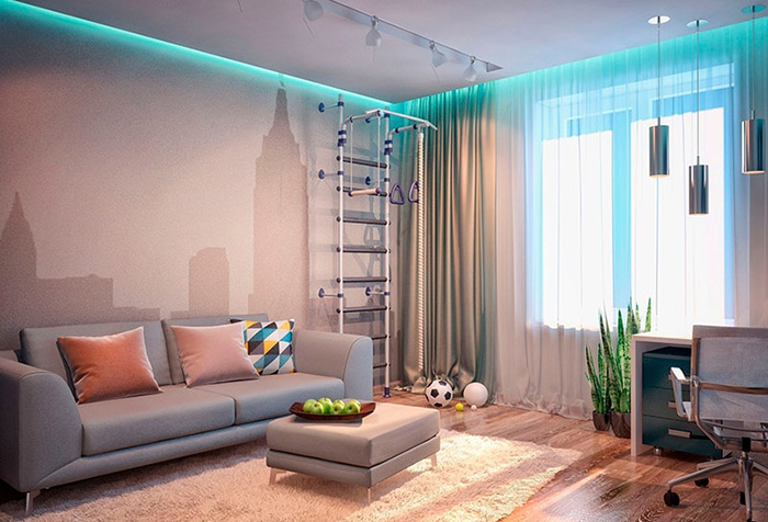 الميزة الأهم هي الجمال. من حيث الجاذبية ، ستارة عائمة تبدو غير عادية ، فإن الصور في مقالتنا ستمكن الجميع من الاقتناع.تقوم أنظمة التعليق المغلقة بحجب الأجزاء غير الجذابة من الجدار ، وتصحيح ارتفاع السقف بشكل مرئي ، مما يجعل من الممكن تزيين التصميم بإضاءة خفيفة.