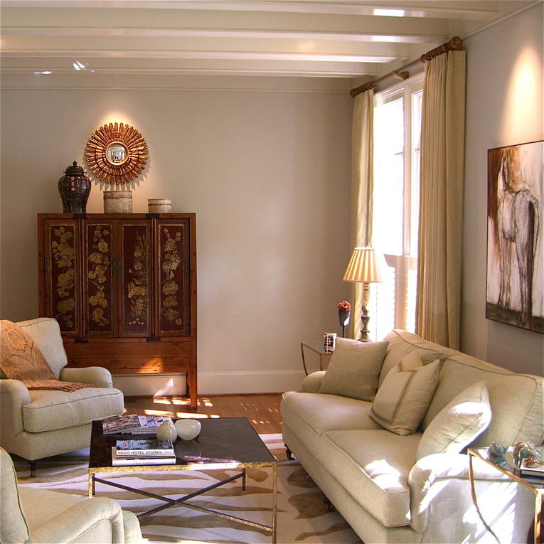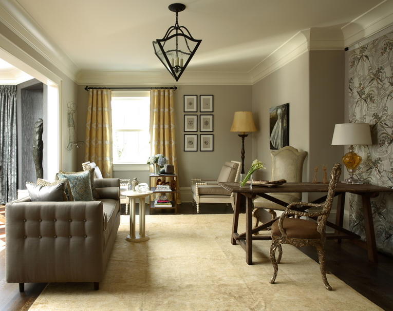 الستائر الألوان الرملية الرطبة على ما يرام مع الرمادي البارد.