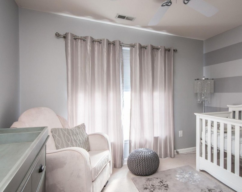 - تتناسب غرف الأطفال ، حيث يسود اللون الرمادي المحايد ، مع ستائر ذات ألوان زهرية وردية ناعمة. تأكد من أنها ليست جذابة للغاية ، وظلال الباستيل ، لطيفة لعين الطفل.