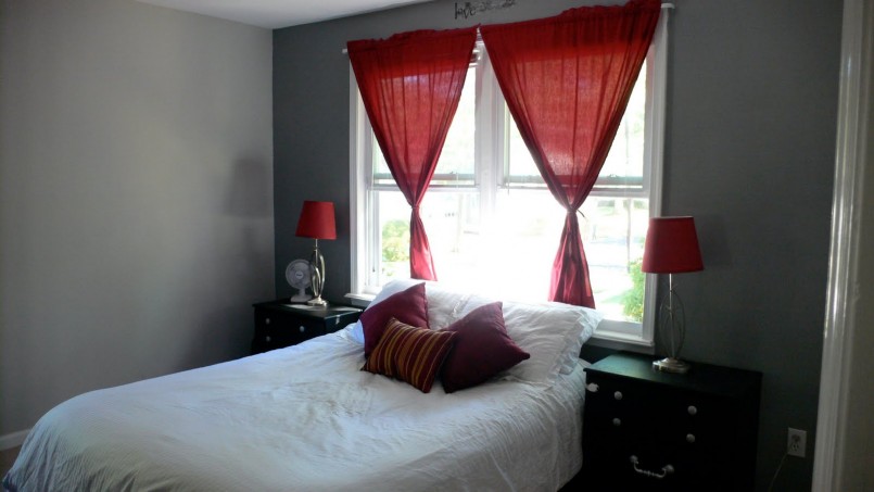 على الرغم من حقيقة أن اللون الأحمر يعتبر لونًا دافئًا ، إلا أنه يمكن دمجه أيضًا مع لون بارد من الجدران الرمادية.
