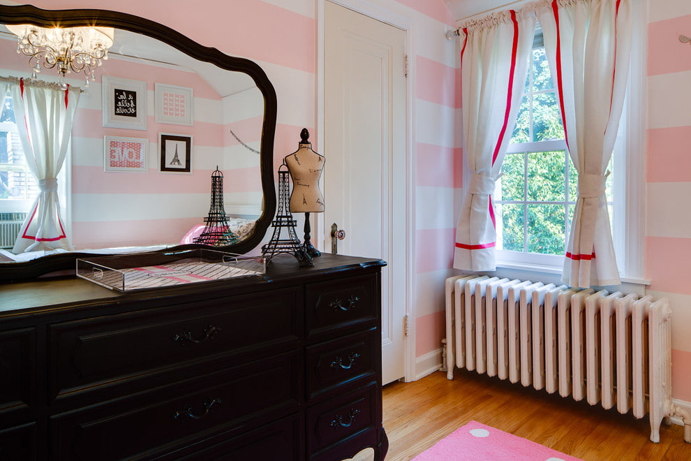 تتمثل صعوبة تقصير هذه الستائر في عدم رغبتك دائمًا في القيام بهيمنة لإفساد مظهر الستائر بلون آخر متناقض من الخلف. ولكن كما اكتشفنا بالفعل ، هناك دائمًا طريقة للخروج ، وهذا الموقف ليس استثناءً. بالنسبة للمبتدئين ، تحتاج الستائر إلى تعليق الحافة لأخذ الشكل المطلوب. ثم ، قم بإزالتها من الطنف وقم بتقليصها إلى الطول المرغوب باستخدام طريقة هدب. ثم خيط على حواف الشريط ، الشريط أو الدانتيل ، والتي سوف تناسب جميع الجانبين من الستار في اللون.