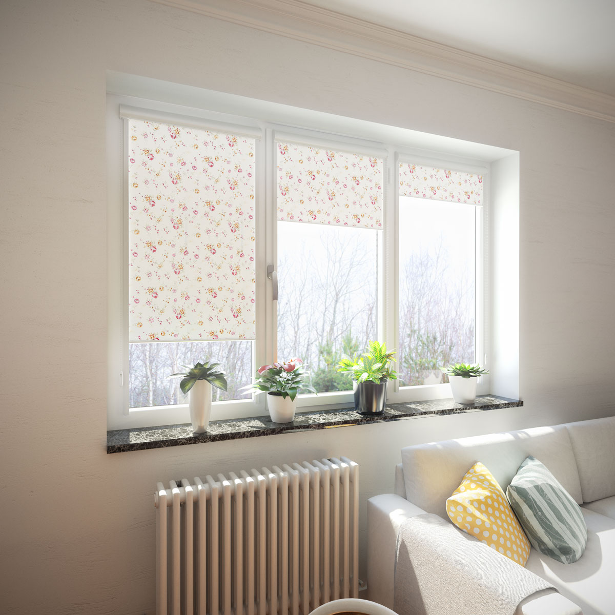 عند تثبيت الستائر المدلفنة على أغلفة النوافذ ، تظل عتبة النافذة مجانية