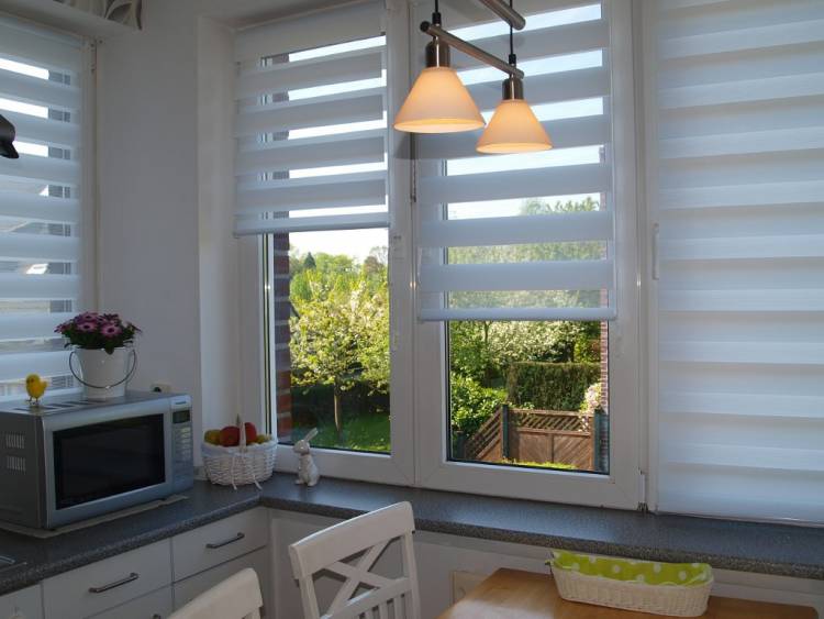 | ليلا ونهارا | عادة ما يتم تركيب هذا النوع في المطبخ. يتكون القماش من أشرطة شفافة كثيفة (اليوم) بالتناوب (تقليد الليل).تتيح لك الشرائط ضبط مستوى الظلام في الغرفة بشكل مستقل. | |