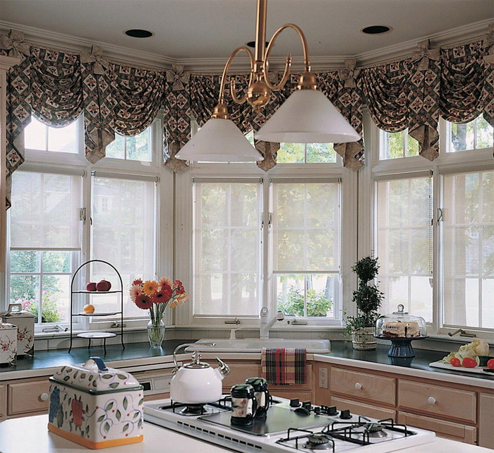 - لاغلاق النوافذ. تتيح لك قطعة صغيرة من القماش لكل وشاح بشكل منفصل فتح وإغلاق النوافذ مع خفض الستائر. عيب هذا الحل هو كثافته العمالية الكبيرة نسبيًا - بعد كل شيء ، يجب تعليق تصميم كل ستارة على حدة.