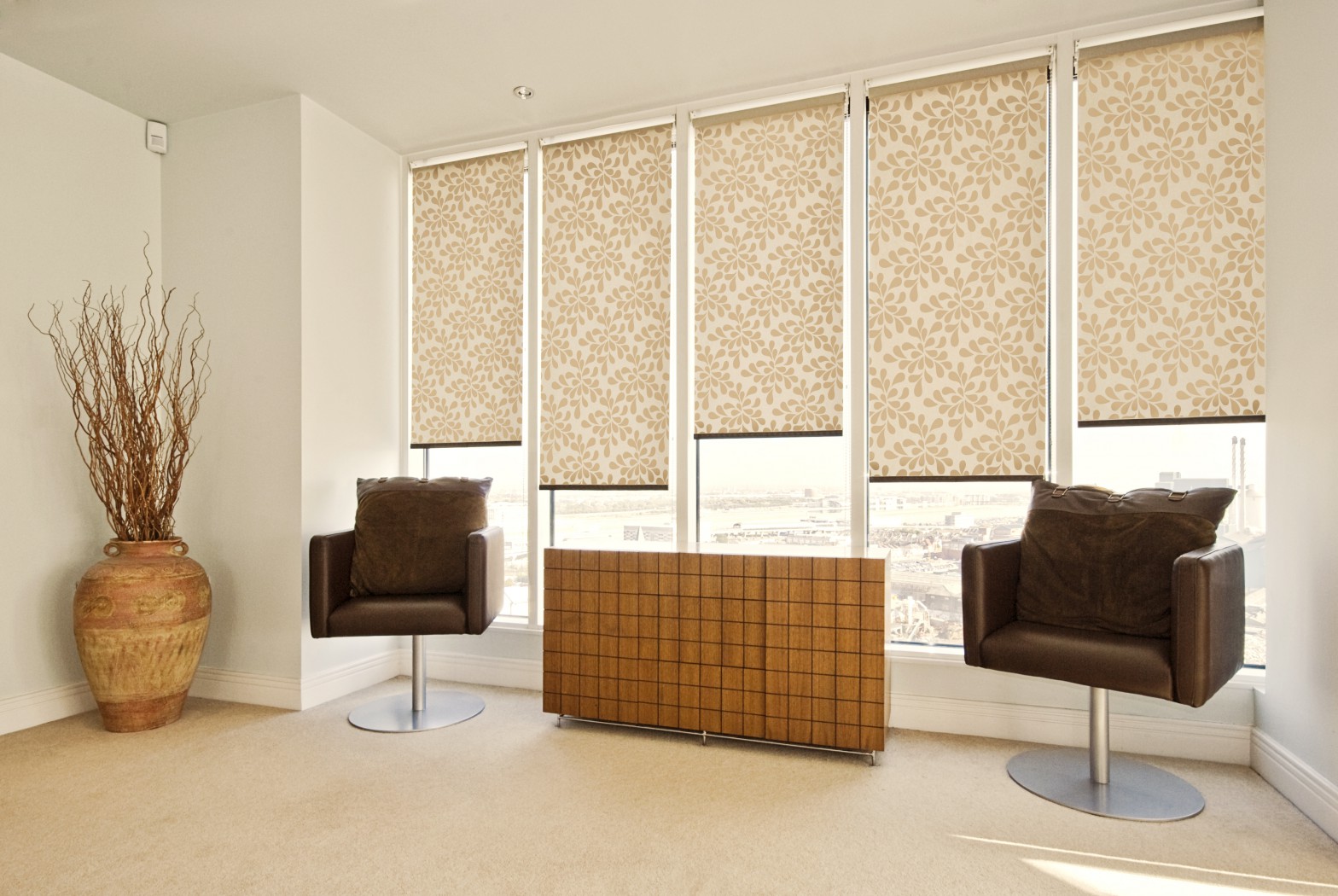 الستائر الدوارة المصغرة ذات شعبية كبيرة مع الأدلة الجانبية لمنع أشعة الشمس تماما.