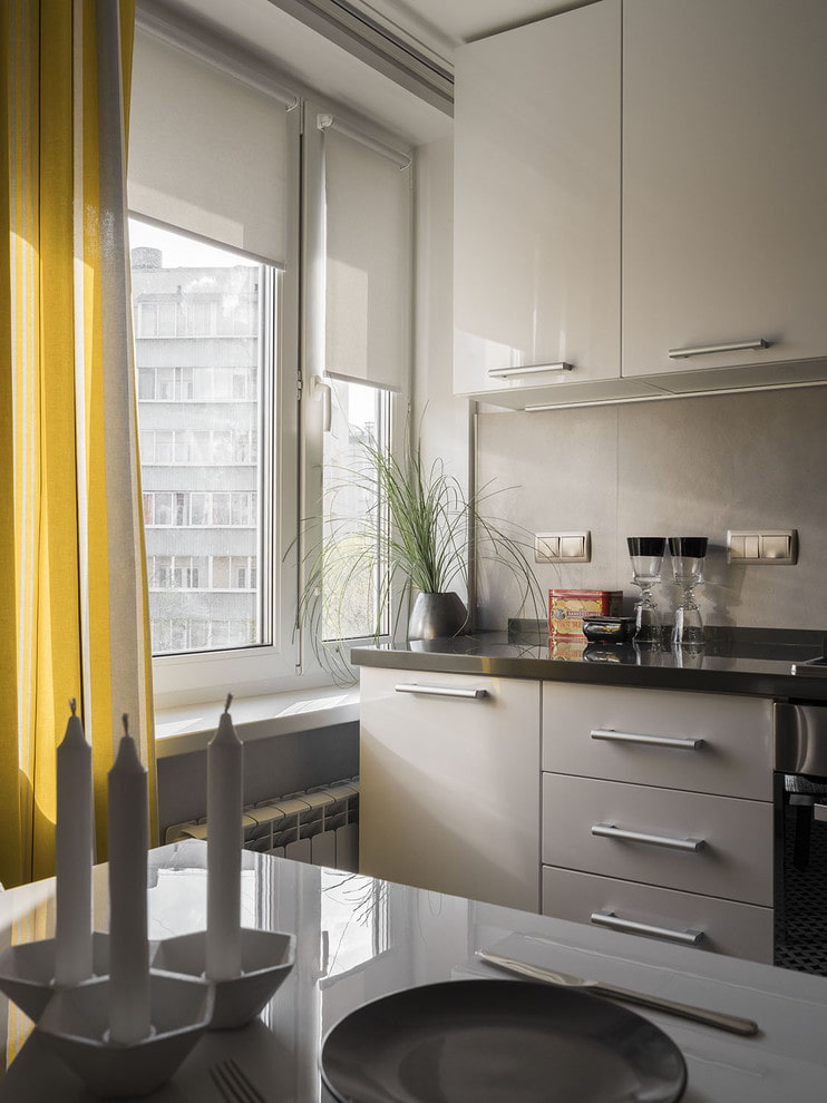 ستائر قماشية صارمة - الخيار الأفضل لتصميم نافذة المطبخ بأسلوب التكنولوجيا الفائقة