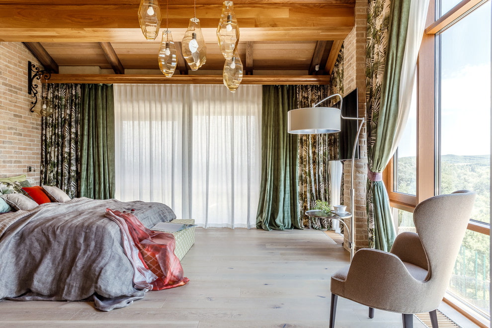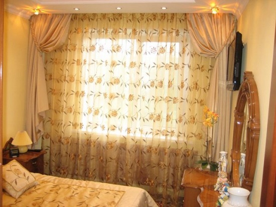 من المهم! على نطاق أوسع قماش ، والمزيد من الخيارات للأقمشة مذهلة. يوصى بتعليق الستائر ، بعرضها ضعف حجم الطنف على الأقل. مثل هذا القرار في ضوء الفوز سوف يقدم التصميم.