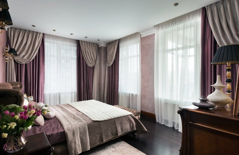 مع الأخذ في الاعتبار لحظات قليلة - إضاءة النوافذ وحجمها وشكلها ، فإن أسلوب زخرفة الغرفة سيكون قادرًا على اختيار الخيار الأفضل لتول غرفة النوم. ستقوم الستائر بتحويل المساحات الداخلية على الفور ، وتشير برفق إلى الذوق الرفيع لأصحاب المنازل ، ووعيهم باتجاهات الموضة.