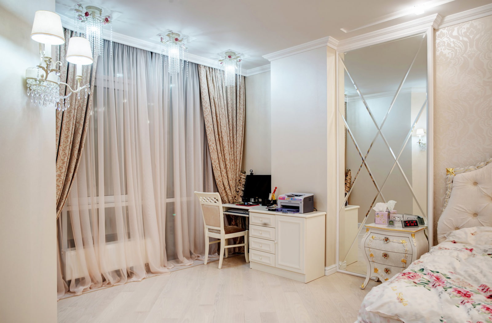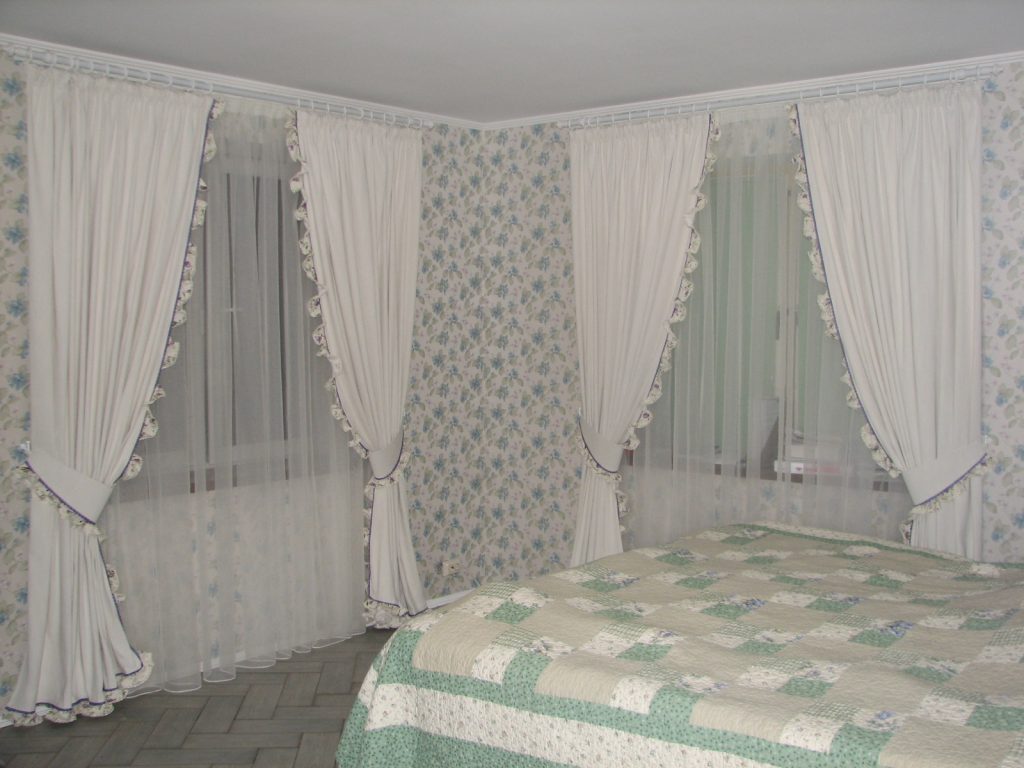 لإعطاء الزخرفة مظهرًا فخمًا للخدر ، تعتمد على مادة كثيفة. إنها تحجب عتبة النافذة ، وتمكن من التحكم في مقدار الضوء الوارد خلال النهار ، وفي المساء تخفي ما يحدث داخلها من أعين المتطفلين من الخارج. تبدو التول الكثيفة في الجزء الداخلي من غرفة النوم جديرة بأداء مادة أحادية الصوت منخفضة المفاتيح. يمكن تزيينه بحدود غبار وإدراج جبر.