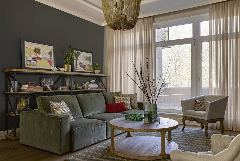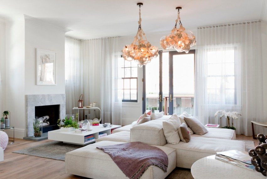 الشيء الرئيسي هو عدم ارتكاب خطأ واختيار الستائر التي سيتم دمجها مع النمط العام وسوف تخون مظهر غرفة المعيشة النهائي.