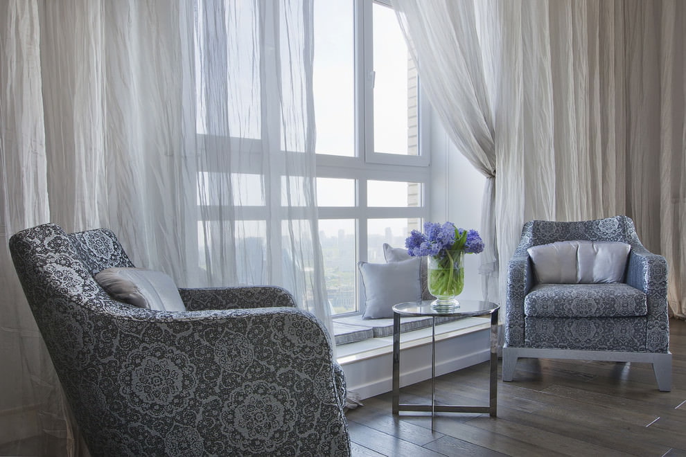 ستؤثر تول الستائر بشكل إيجابي على الأجواء في غرفة المعيشة ، وستسبب عواطف إيجابية وراحة البال.