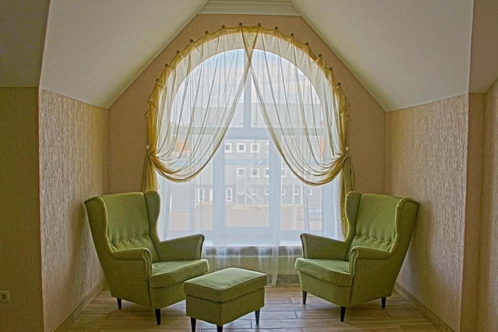 نافذة الديكور مع تول دون الستائر - الوصف والأمثلة والصور