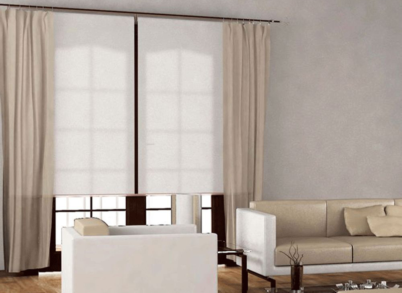 تتكون الستائر النهارية الليلية من شريطين من القماش ؛ عند إغلاقها ، فإنها تبدو كقماش صلب.