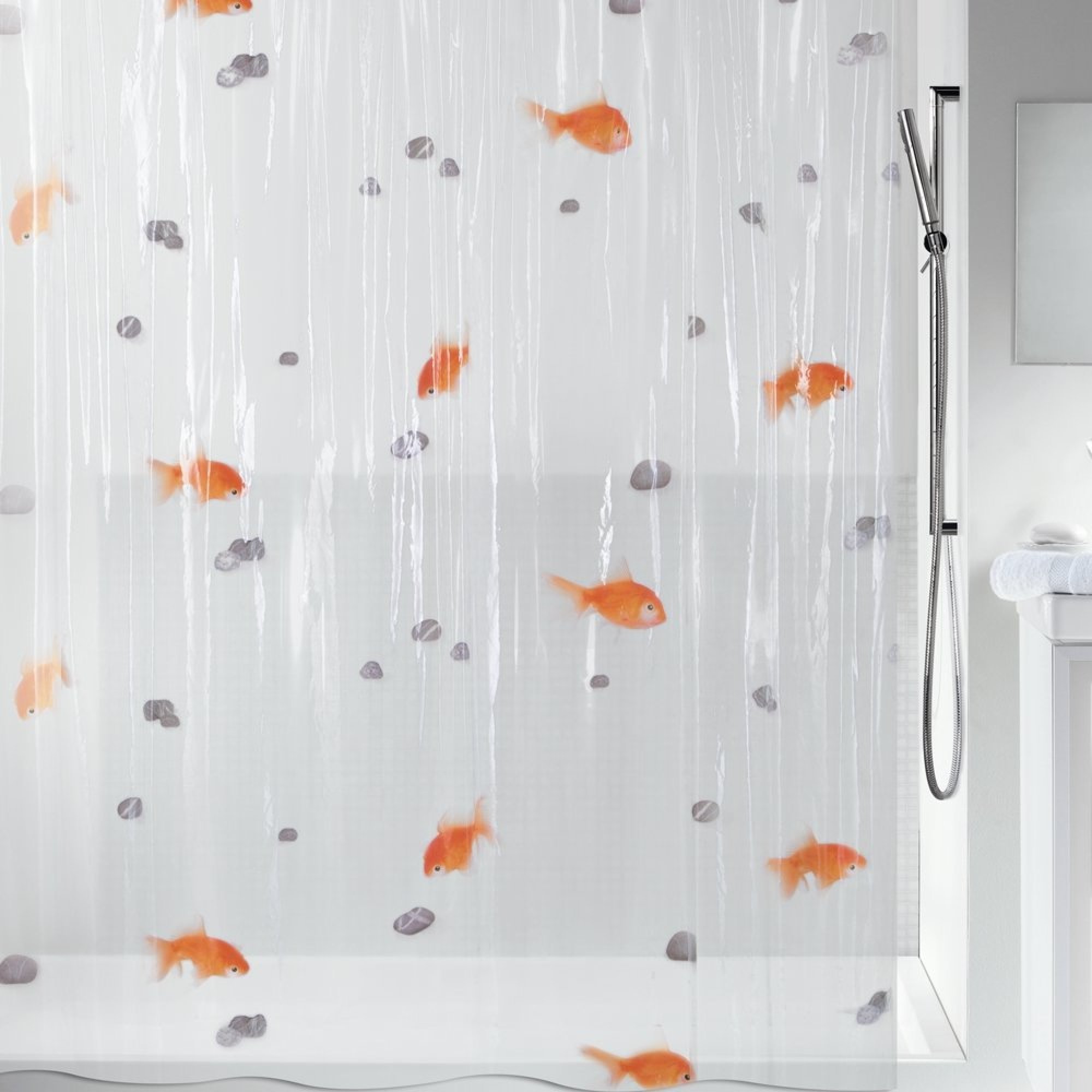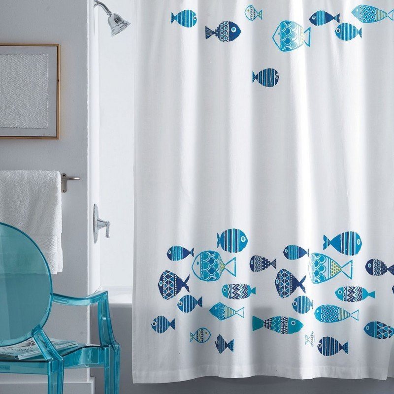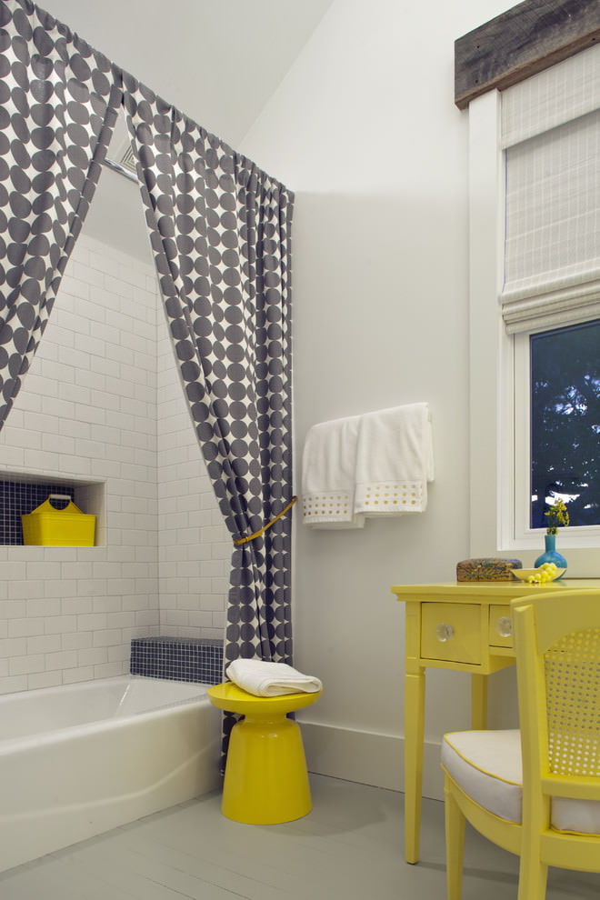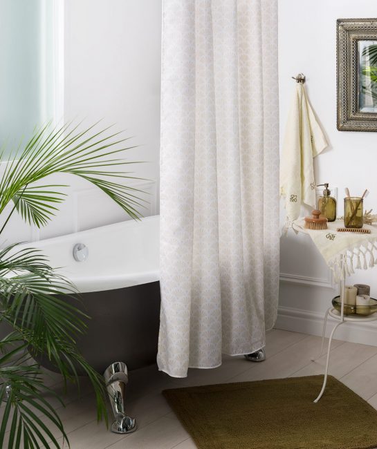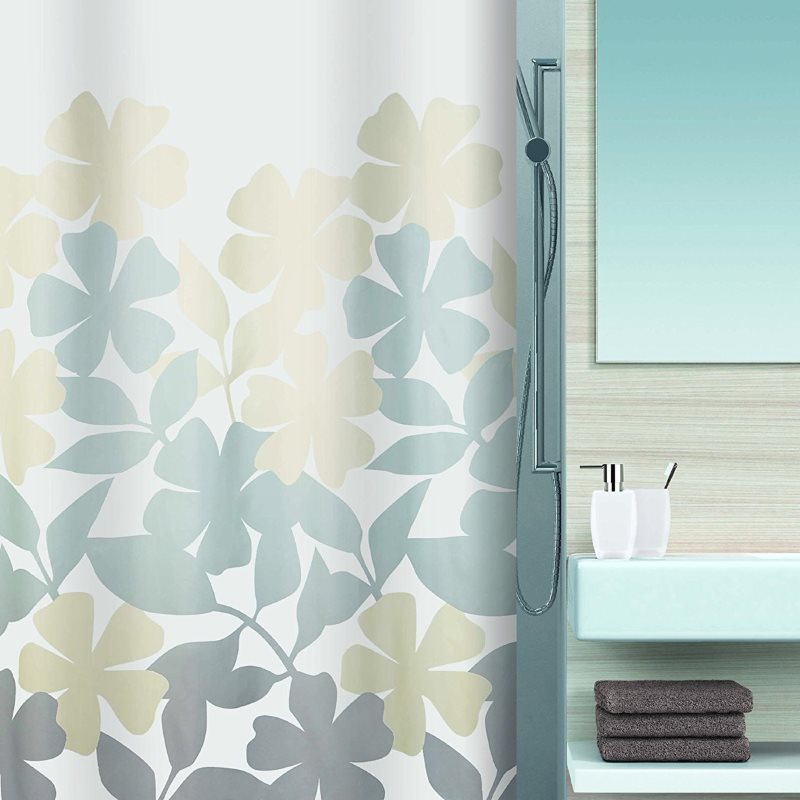 ستارة الحمام هي العنصر الأكثر وضوحًا الذي يحدد النمط الكامل للغرفة. وهناك مجموعة كبيرة من المطبوعات والنماذج. هناك حتى الستائر المورقة مكدسة.