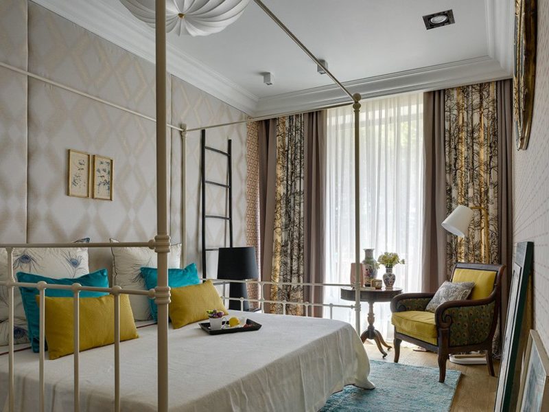 للحصول على مساحة صغيرة تناسب الستائر ، مزينة بألوان باردة أو باستيل. سيقوم التكوين النهائي بتوسيع المساحة الكلية وإطالة الجدران. من الأفضل اختيار غرفة النوم الباردة لغرفة نوم واسعة وفسيحة.