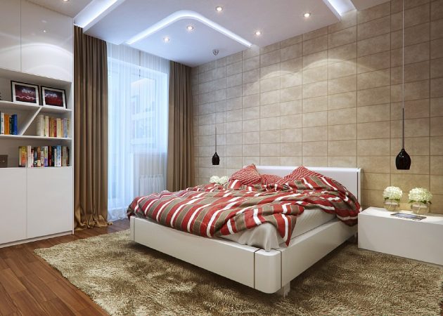 مجلس. مع تصميم غرفة النوم هذا ، ستفعل الستائر الدوارة.
