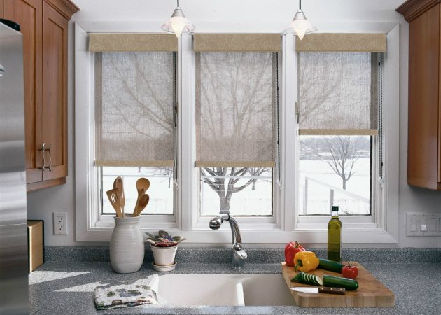 النقطة المهمة هي موقع منطقة العمل. إذا كان الموقد قريبًا من النافذة ، فسوف تتراكم آثار الدهون وجزيئات الطعام على القماش. في هذه الحالة ، من الأفضل استخدام خيارات القوائم.