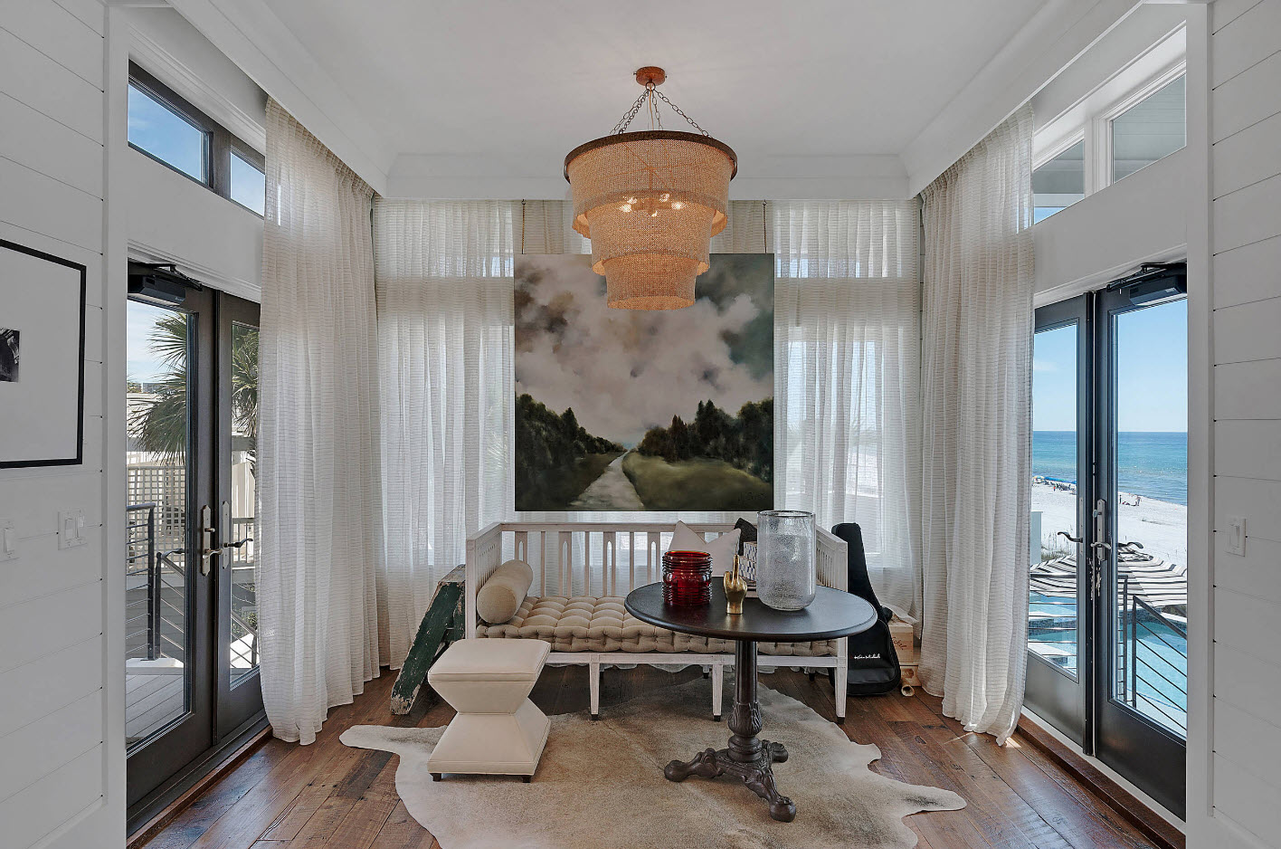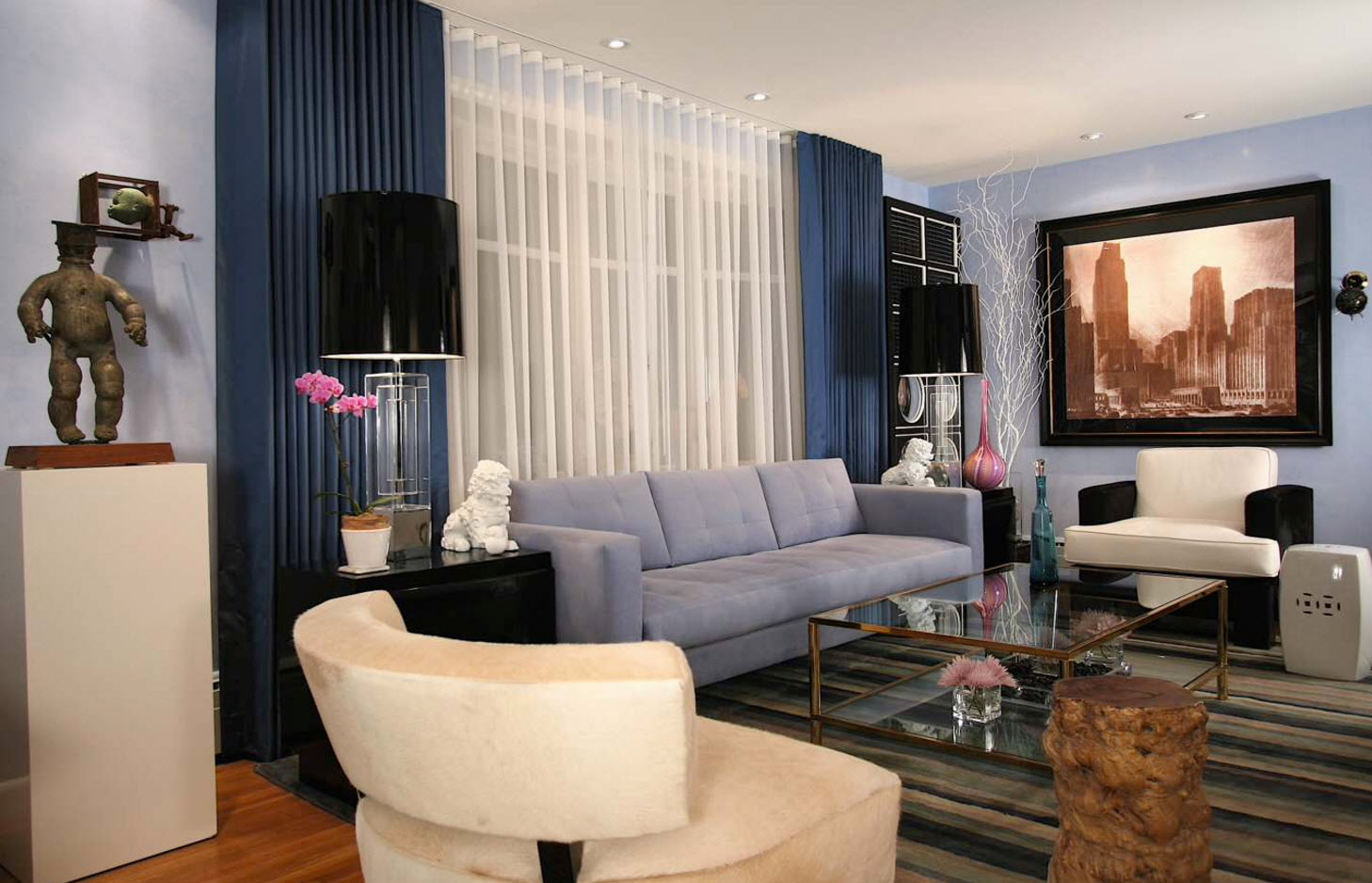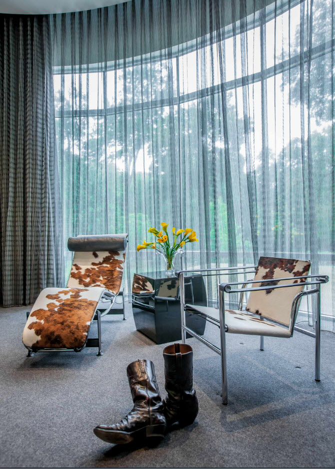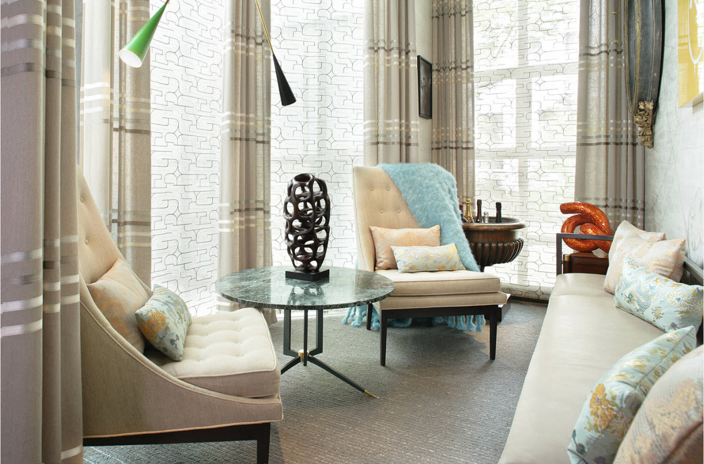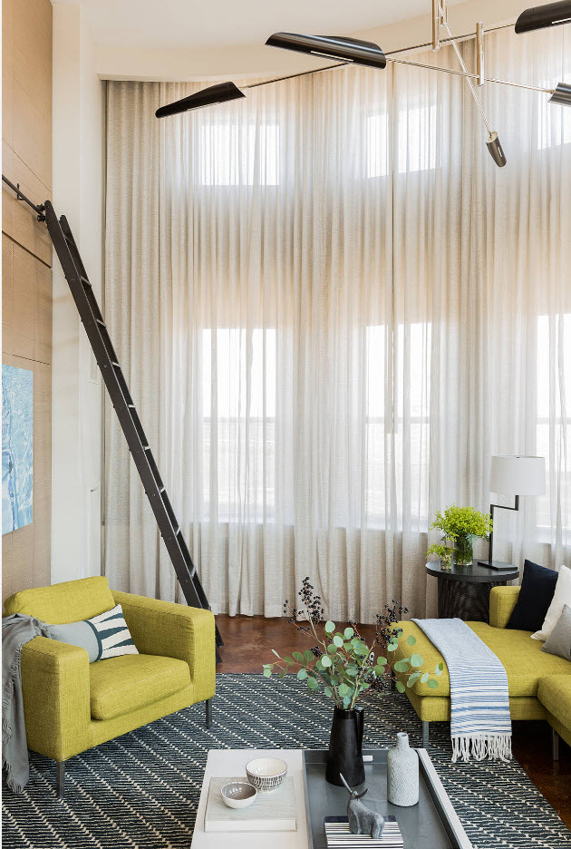 يمكن لزوج من الضوء والستائر الهوائية تغيير الجو في غرفة المعيشة وتغيير التصور المعتاد.