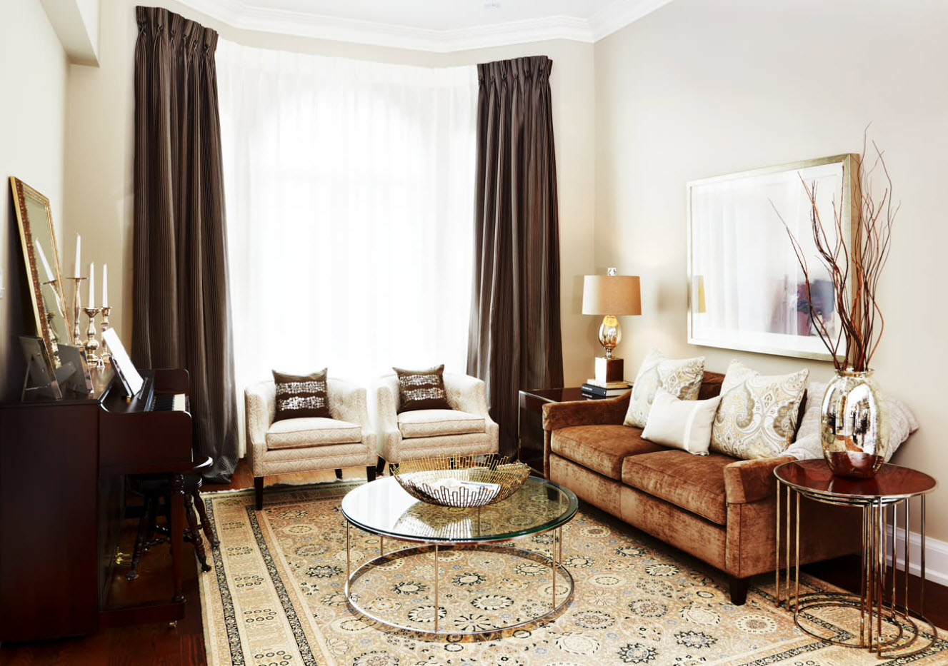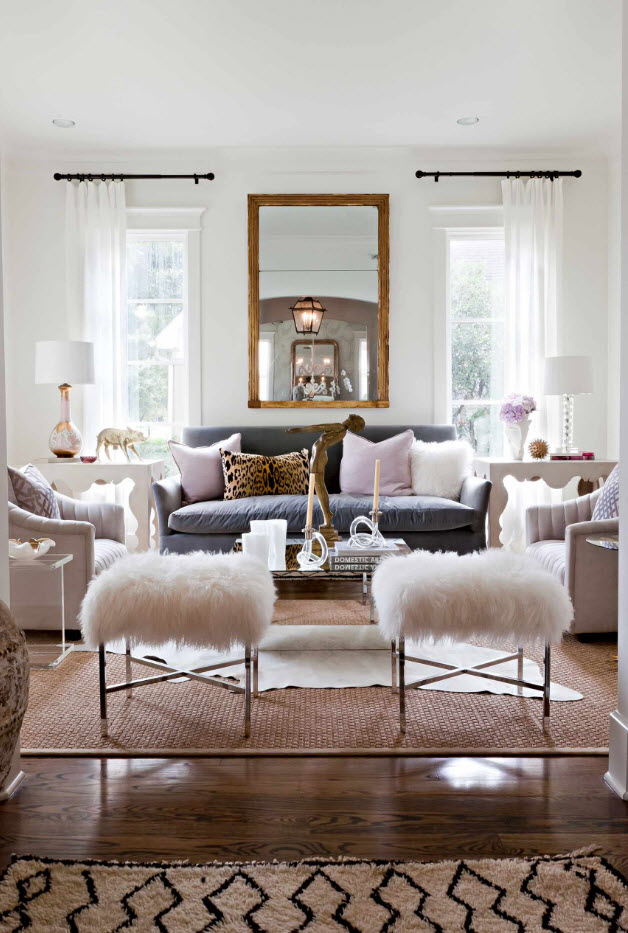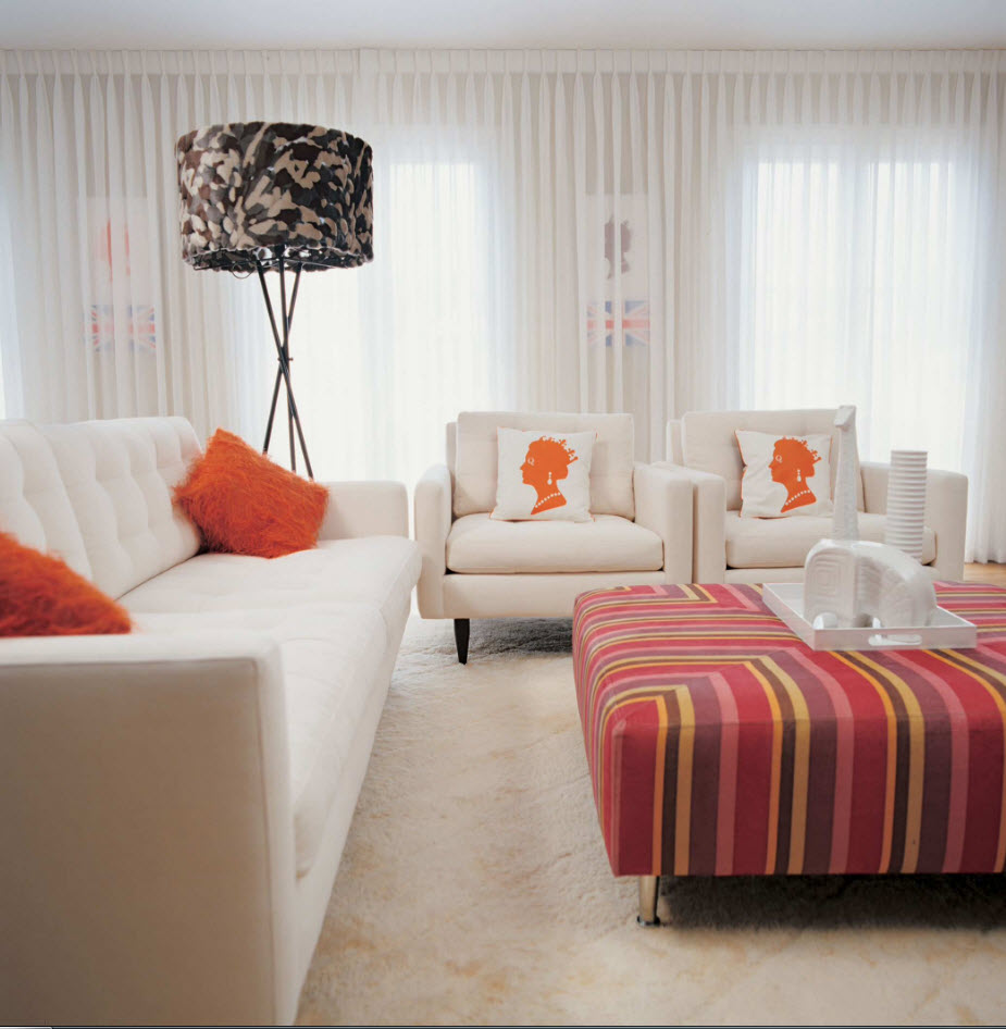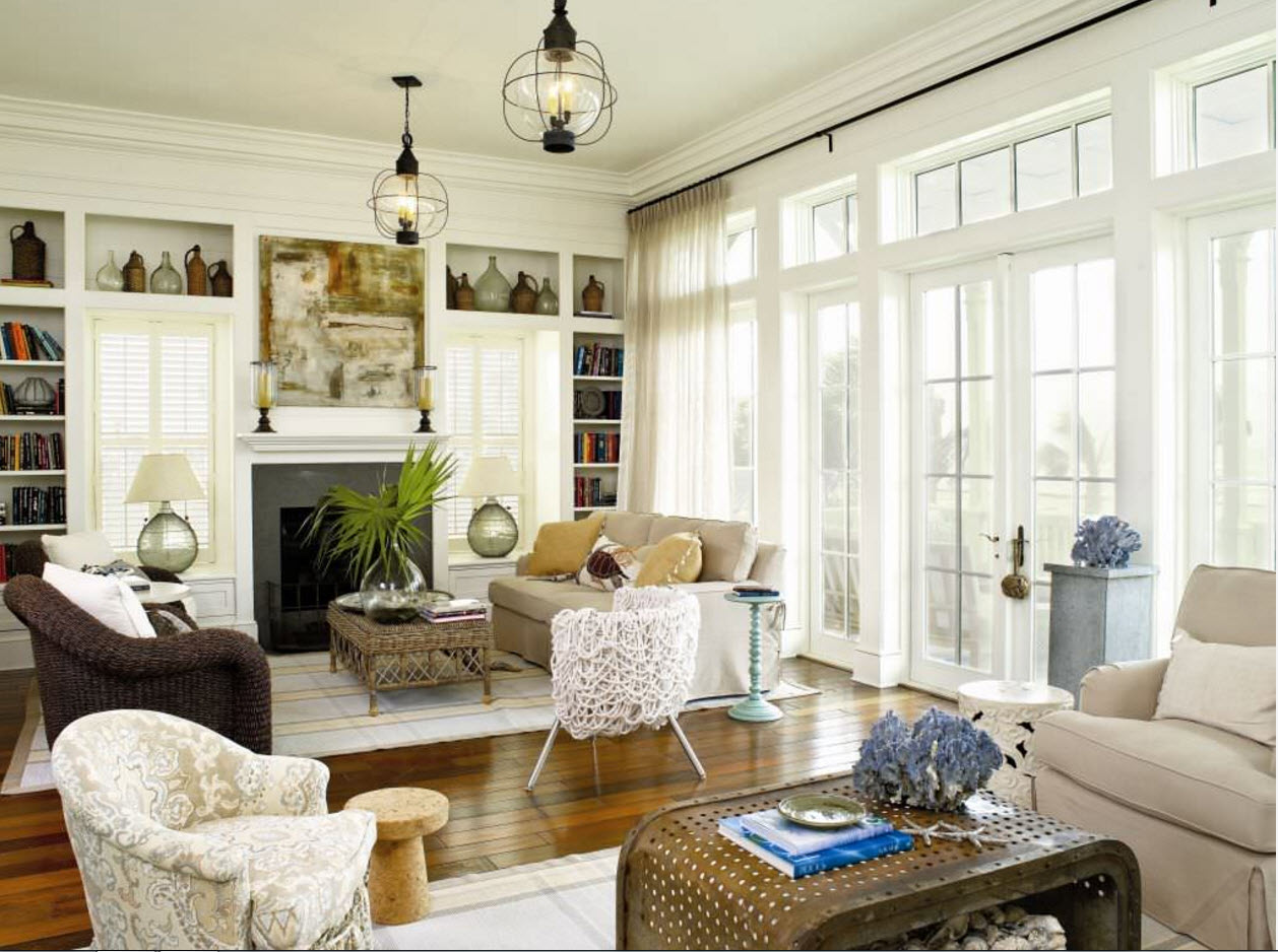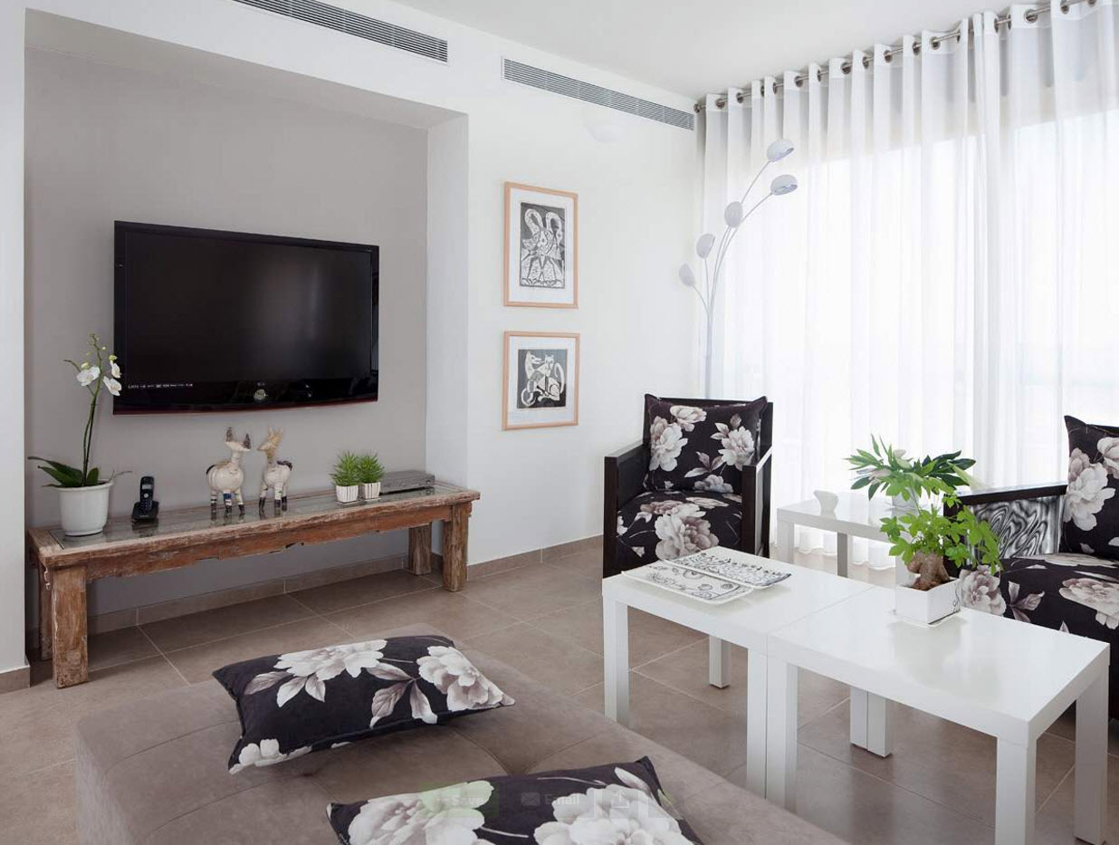 أمثلة على كيفية اختيار تول في المناطق الداخلية من غرفة المعيشة ، ويتم عرض الصور أدناه: