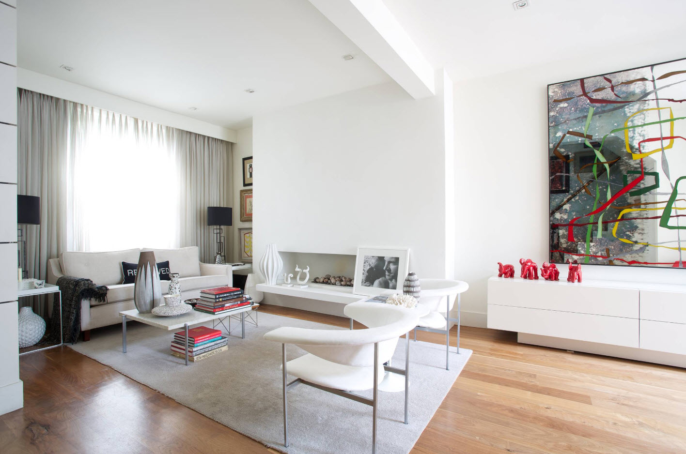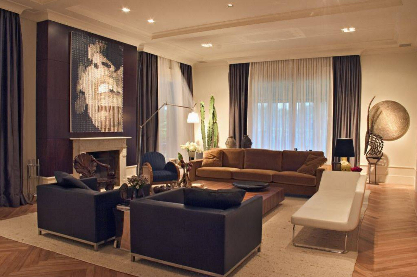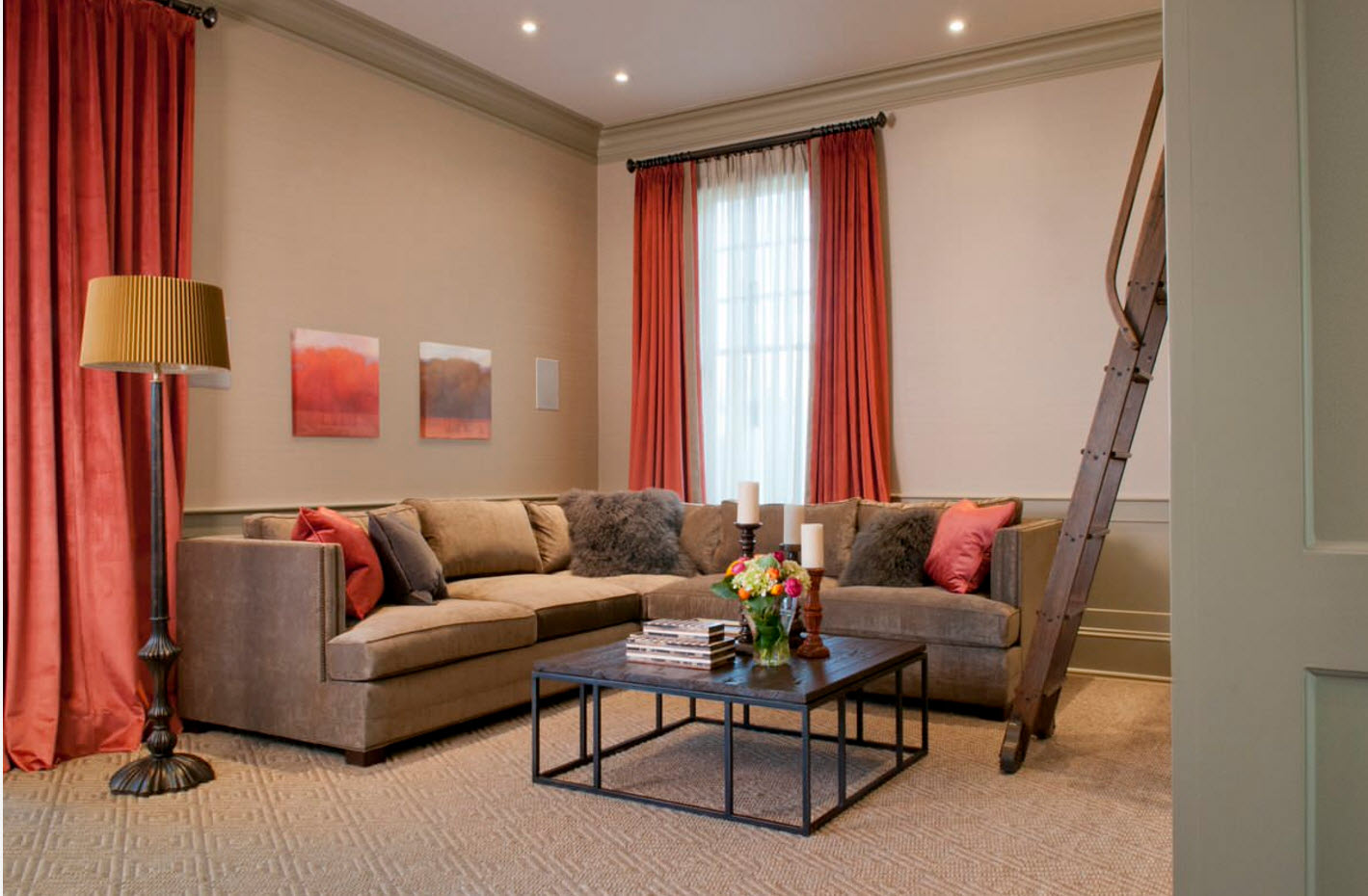أمثلة على كيفية اختيار تول في المناطق الداخلية من غرفة المعيشة ، ويتم عرض الصور أدناه: