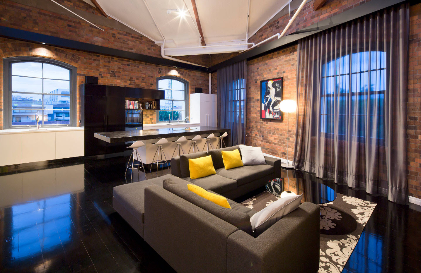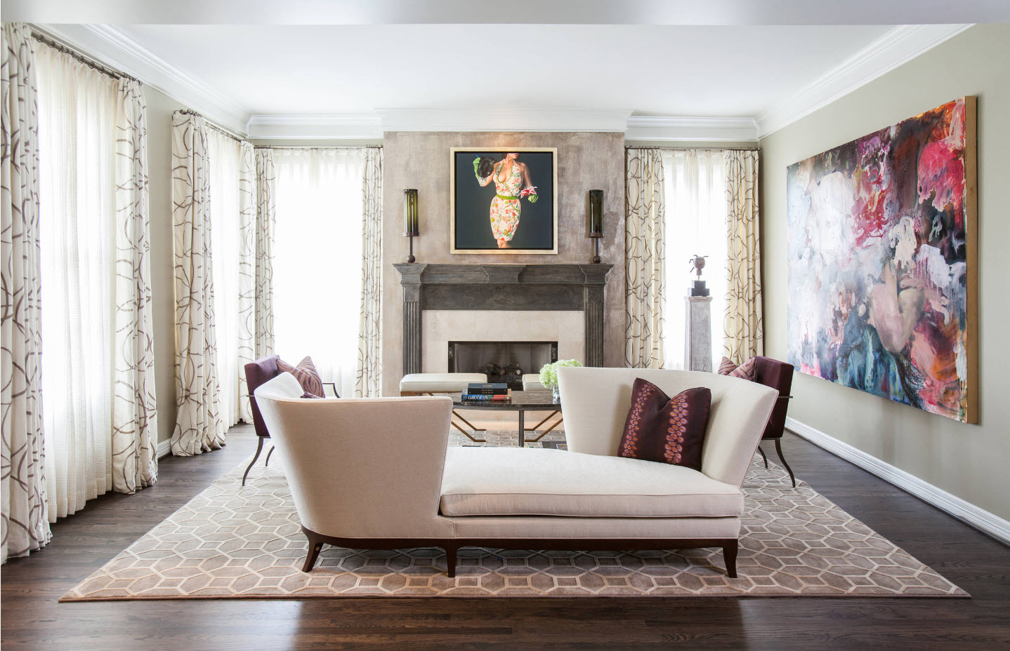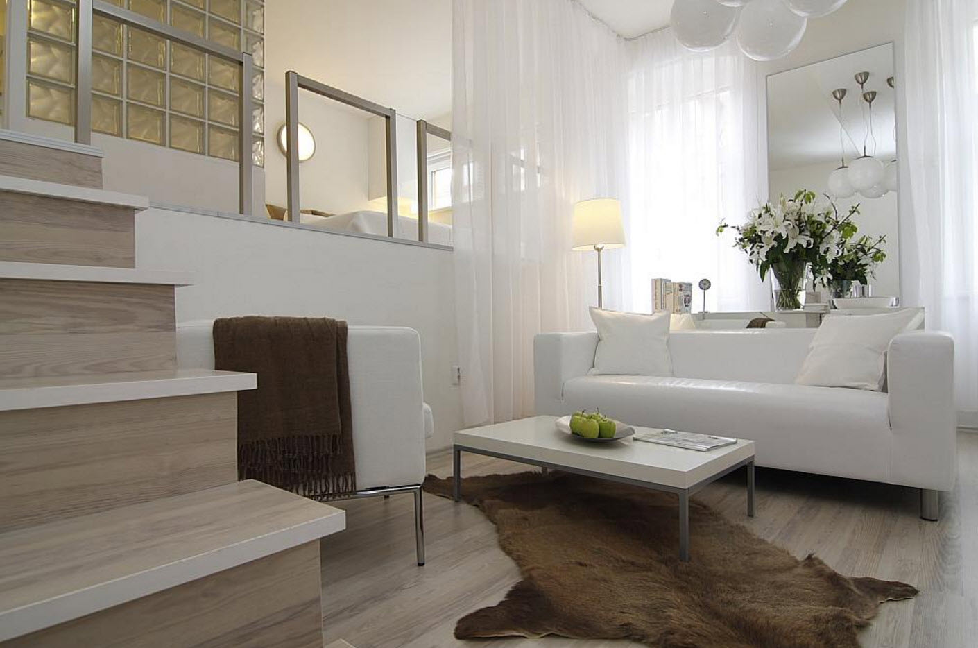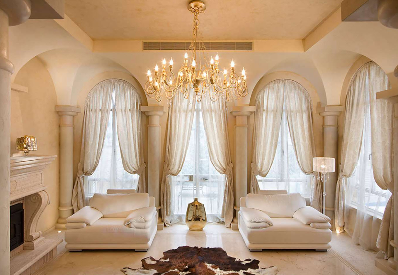 أمثلة على كيفية اختيار تول في المناطق الداخلية من غرفة المعيشة ، ويتم عرض الصور أدناه: