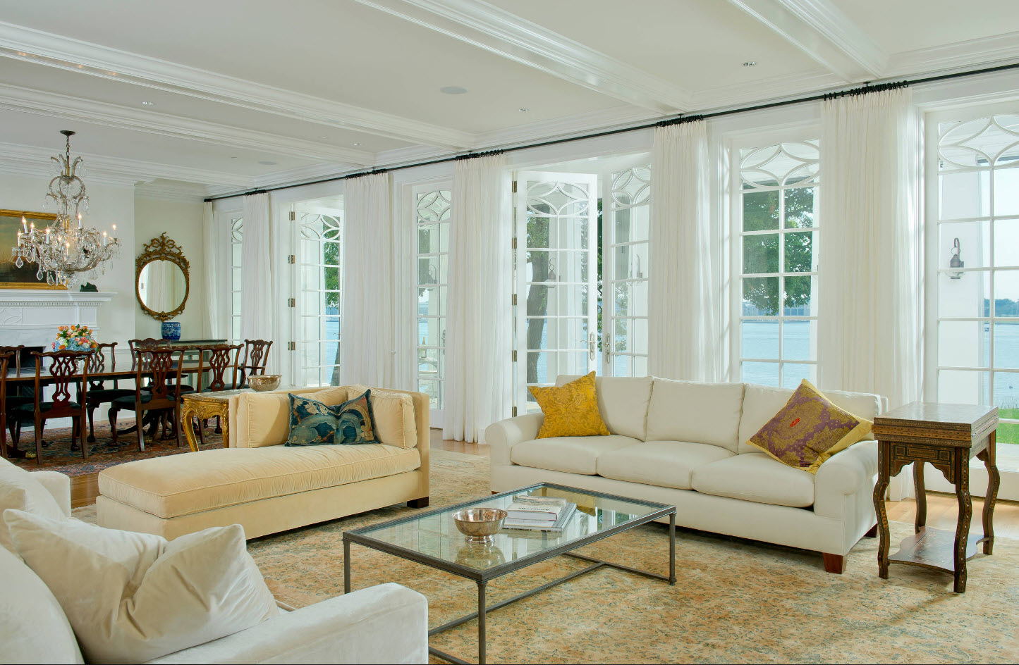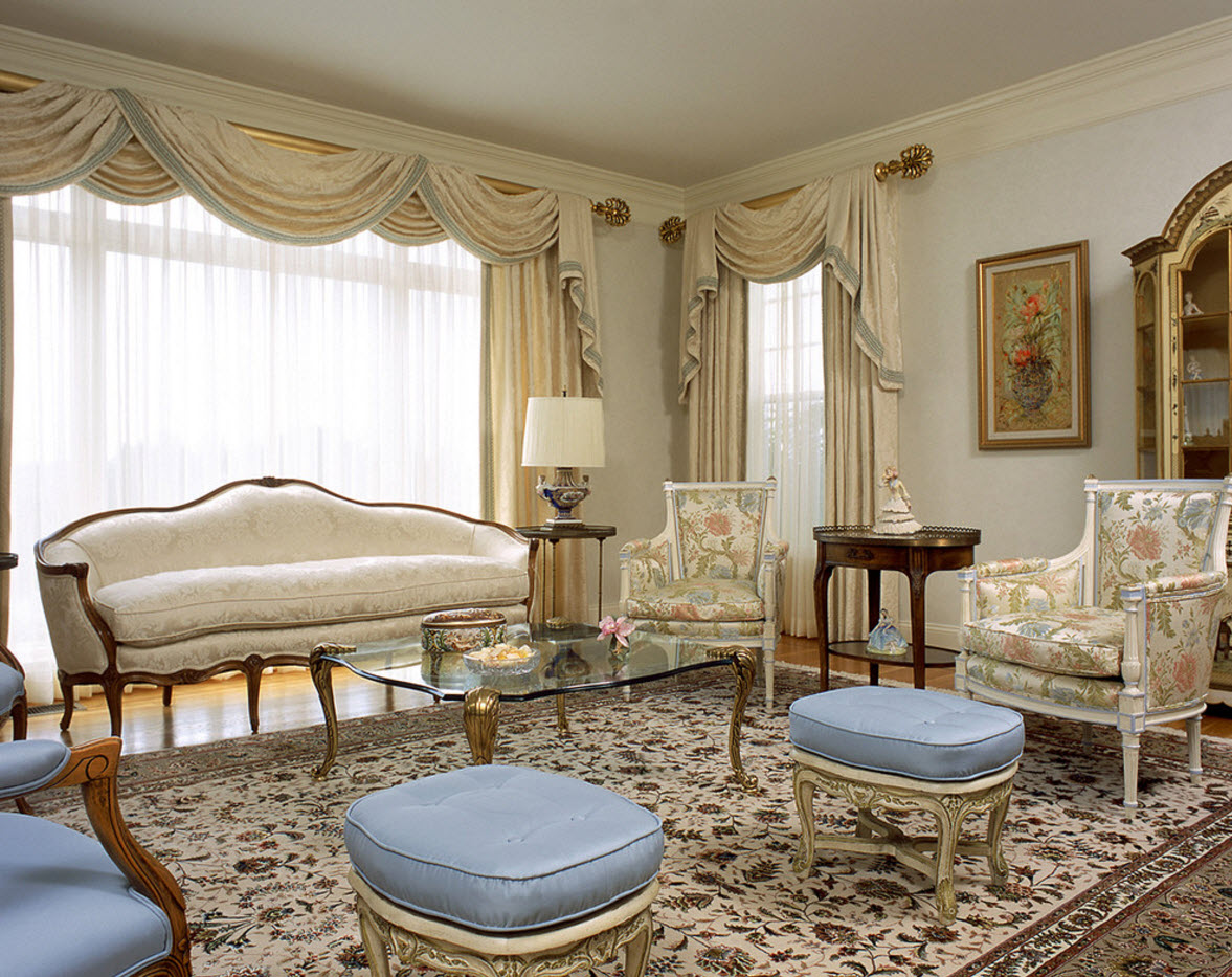 أفكار صور لنوافذ غرفة المعيشة مع زخرفة تول