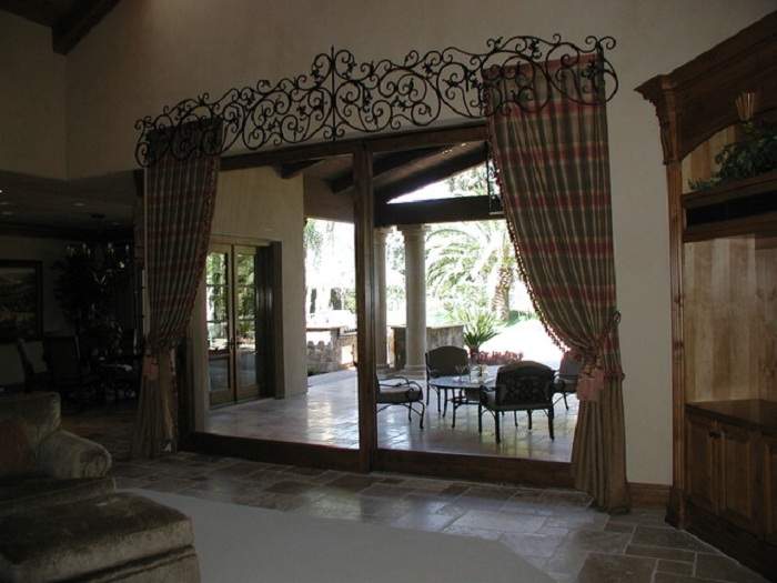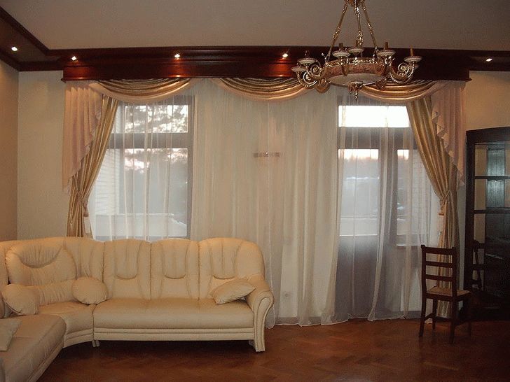 مع مساعدة من ثلاثة صفوف من الأفاريز ، يمكنك تجميع مجموعات فريدة من الستائر والتول ، تكملها لامبريكين جميلة.