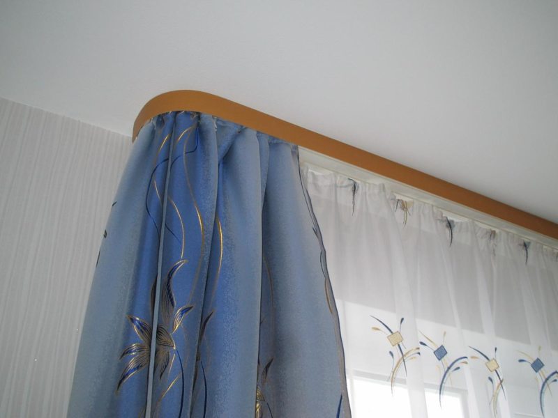 - كورنيش الشخصي. تتميز بأنبوب ألومنيوم مربع ، يمكن تغيير اتجاهه في اتجاهات مختلفة.الهياكل والستائر متعددة المستويات في شكل أقواس - وهذا هو حصانهم المميز.