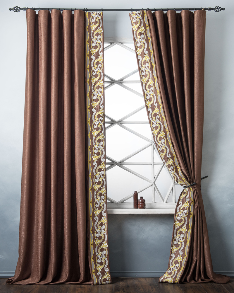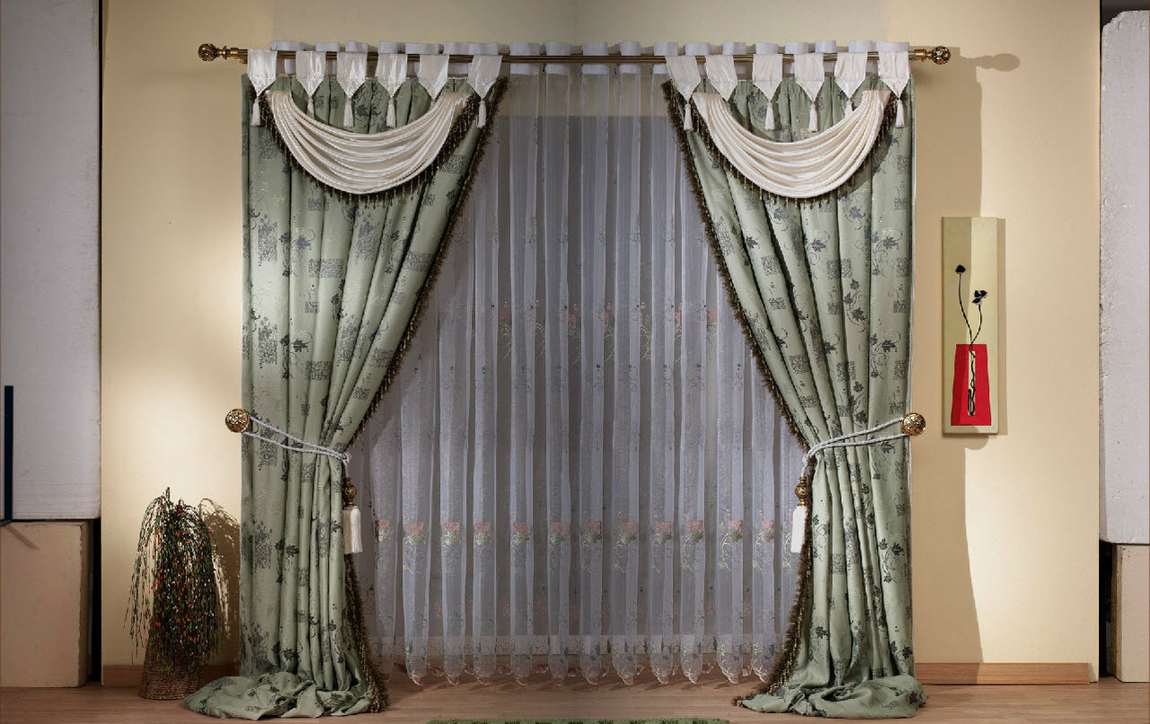 للزينة الإضافية للستائر ، يمكنك استخدام الخياطة والدانتيل والتطريز بالحبال.