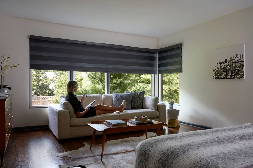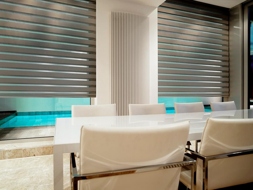 ستائر "Zebra" مثالية لتزيين نافذة أو مدخل بانورامي.