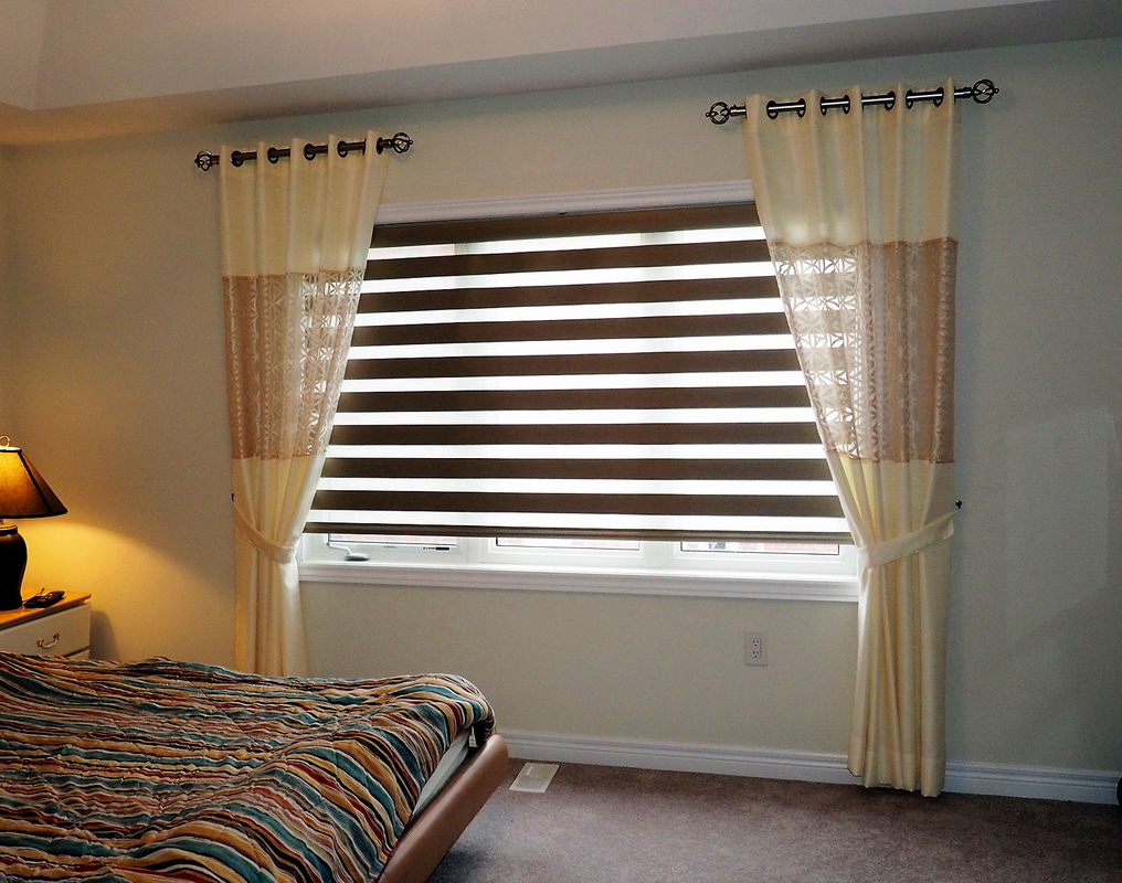 يمكن الجمع بين الستائر النهارية والستائر النسيجية السميكة