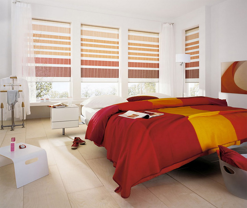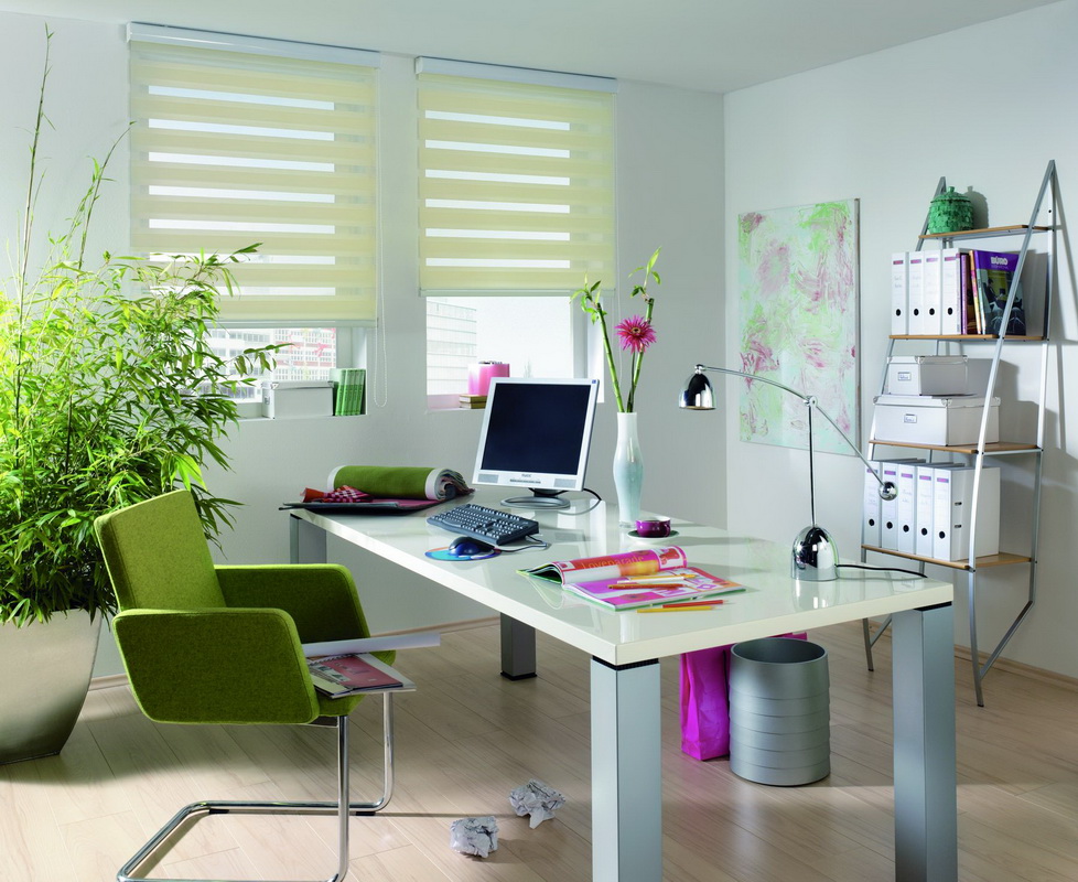 في المناطق الداخلية من المباني الستائر الضيقة المدرفلة تبدو جيدا. على النوافذ الواسعة ، سيبدو هذا التصميم مرهقًا للغاية. للنمط البيئي ، بروفانس ، يمكنك اختيار نماذج بألوان الفستق والأرجواني. أنها سوف تجعل الغرفة جديدة وأكثر إثارة للاهتمام.