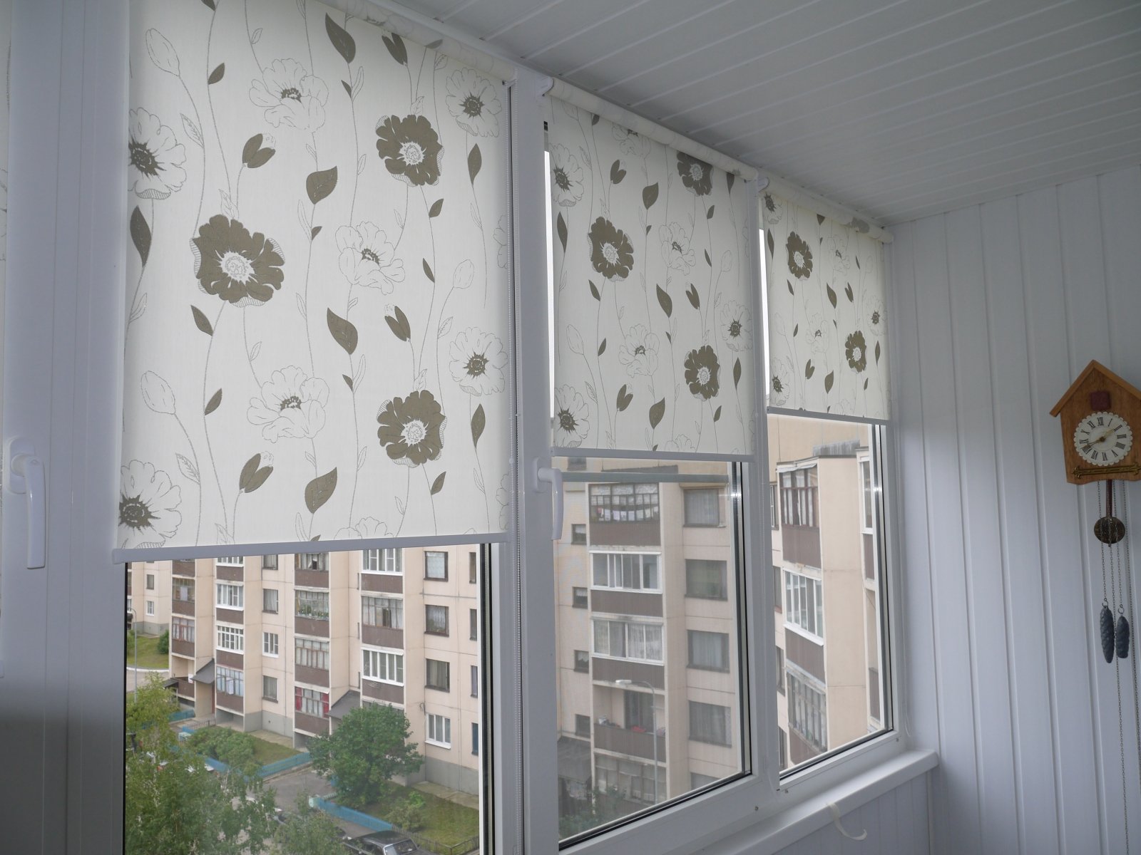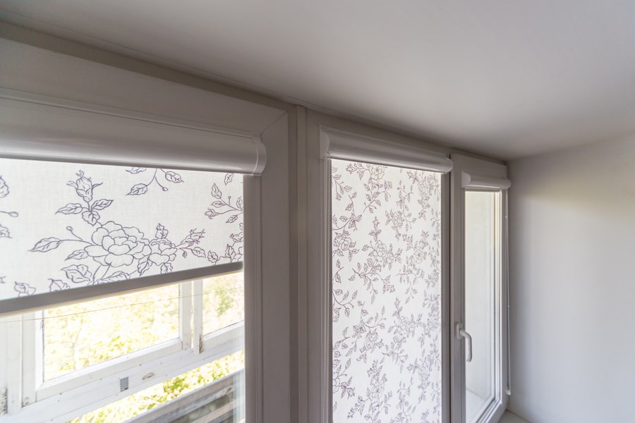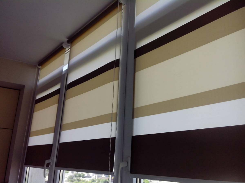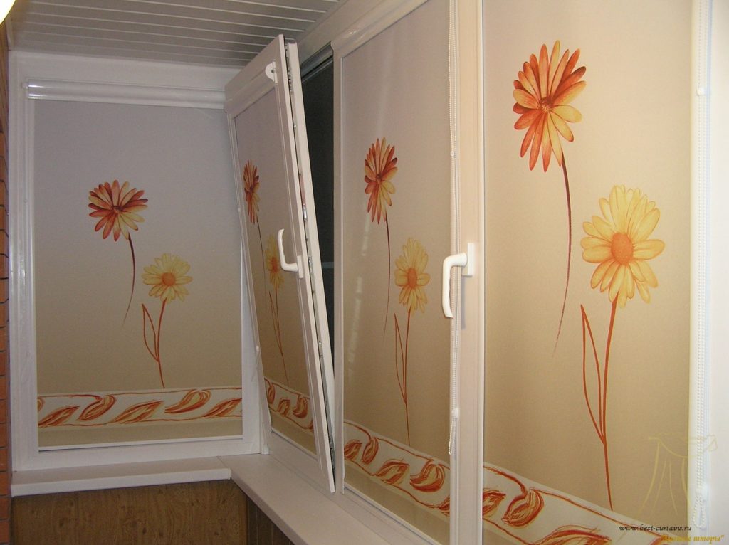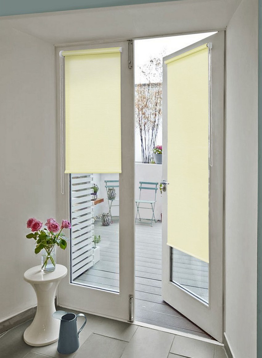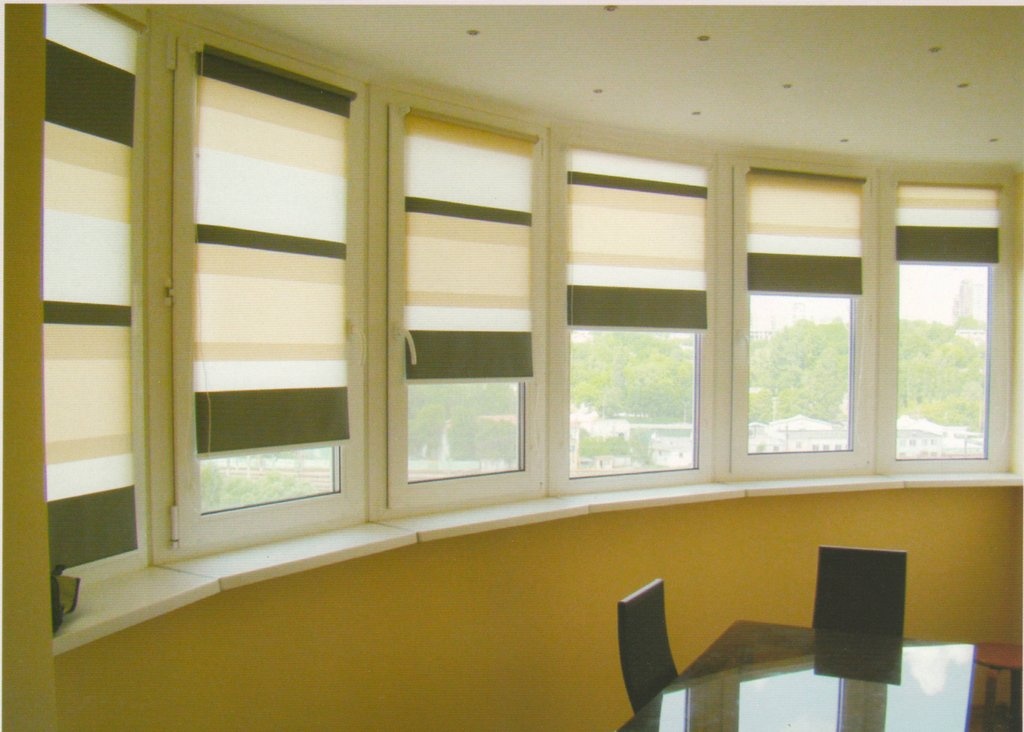 من الضروري اختيار حجم قماش الستائر الدوارة على باب الشرفة. بحيث لا تفتح عند فتح الأسطوانة. في حالة الحساب الصحيح لتشغيل الباب لن يكون هناك أي تدخل. الانتهاء من منحدر الباب غير معطوب. التثبيت المسموح به من الخارج. العيب هو أنه في كل مرة لتغيير ارتفاع الستار سوف تضطر إلى فتح باب الشرفة.