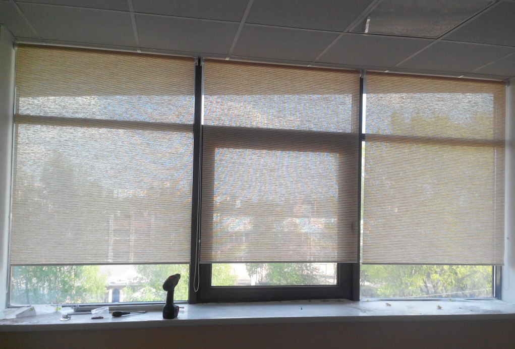 من الممكن أيضًا وضع الويب في الفجوة بين النوافذ ذات الزجاج المزدوج. في هذه الحالة ، يتم إخراج بنية التحكم بحيث لا تتداخل مع تشغيل النوافذ نفسها. ولكن يصبح من المستحيل الرعاية الصحية ، لأن الجزء الرئيسي ببساطة غير متوفر.