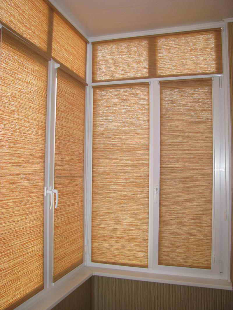 الايجابيات: طبيعي ، لا يسبب الحساسية ، والمظهر الأصلي. السلبيات: من الصعب تنظيم كمية الضوء المنقول ، والوزن الثقيل ، ودرجة الضوضاء الناتجة أكبر من درجة المادة. يجب أن تأخذ في الاعتبار أن الشرفة جزء من شقة ، غالبًا ما تكون فيها الرياح والجفاف. إذا كنت جاهزًا لعدم السماح بالضوضاء العالية ، ولكن الضوضاء المستمرة ، فهذا الخيار مناسب.