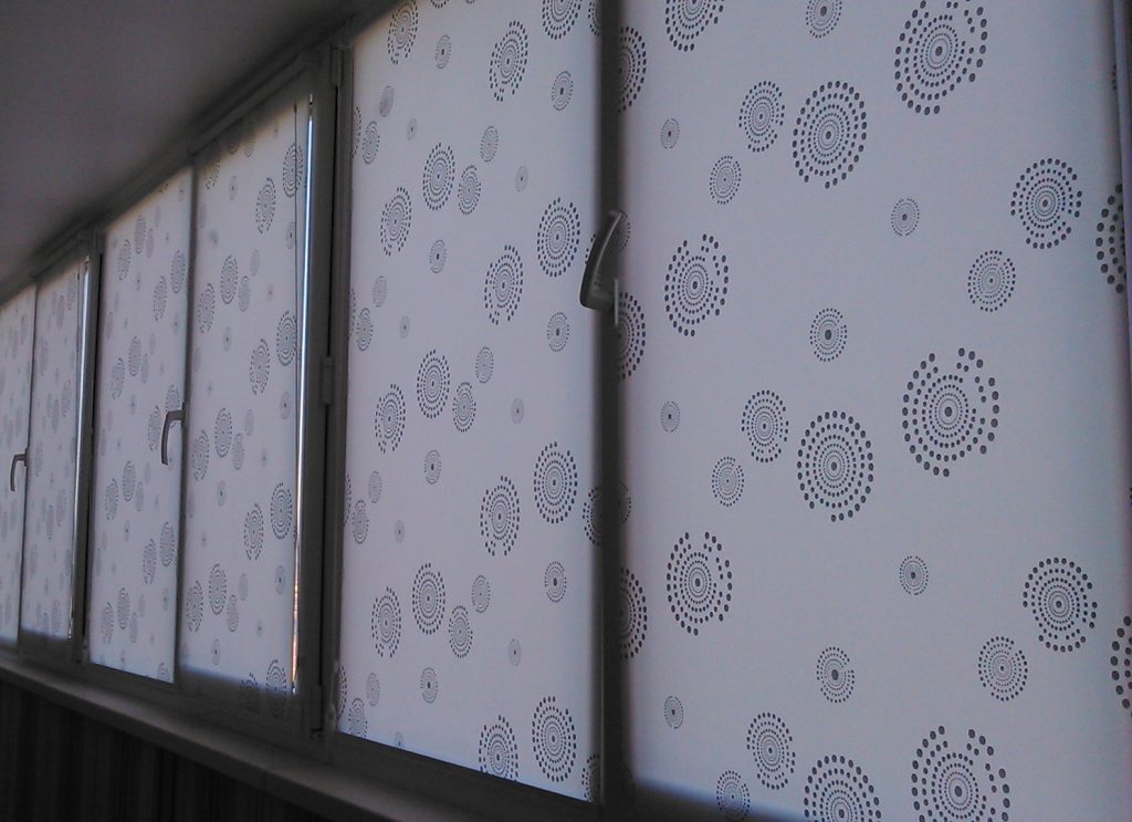 - البوليستر. يحافظ على اختلافات درجات الحرارة (من المهم بالنسبة للغرف بدون تدفئة). ارتداء مقاومة لا تخاف من الرطوبة. لا تمتد. على أساسها ، طباعة الصور والقوام القوام. مقاومة للرطوبة. خيار مرجعي للاستخدام على الشرفة.