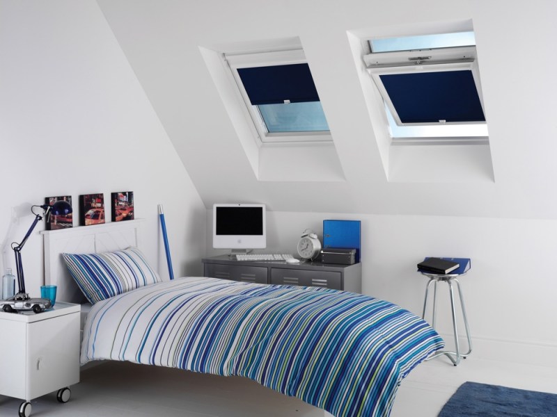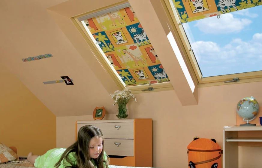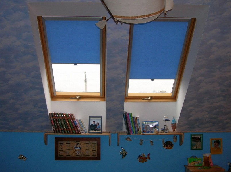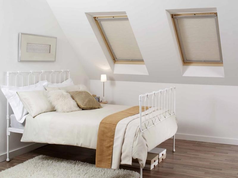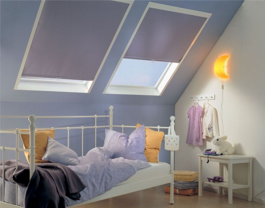 عند تنظيم غرفة نوم في غرفة العلية ، ستكون ستائر التعتيم هي الحل الأمثل.